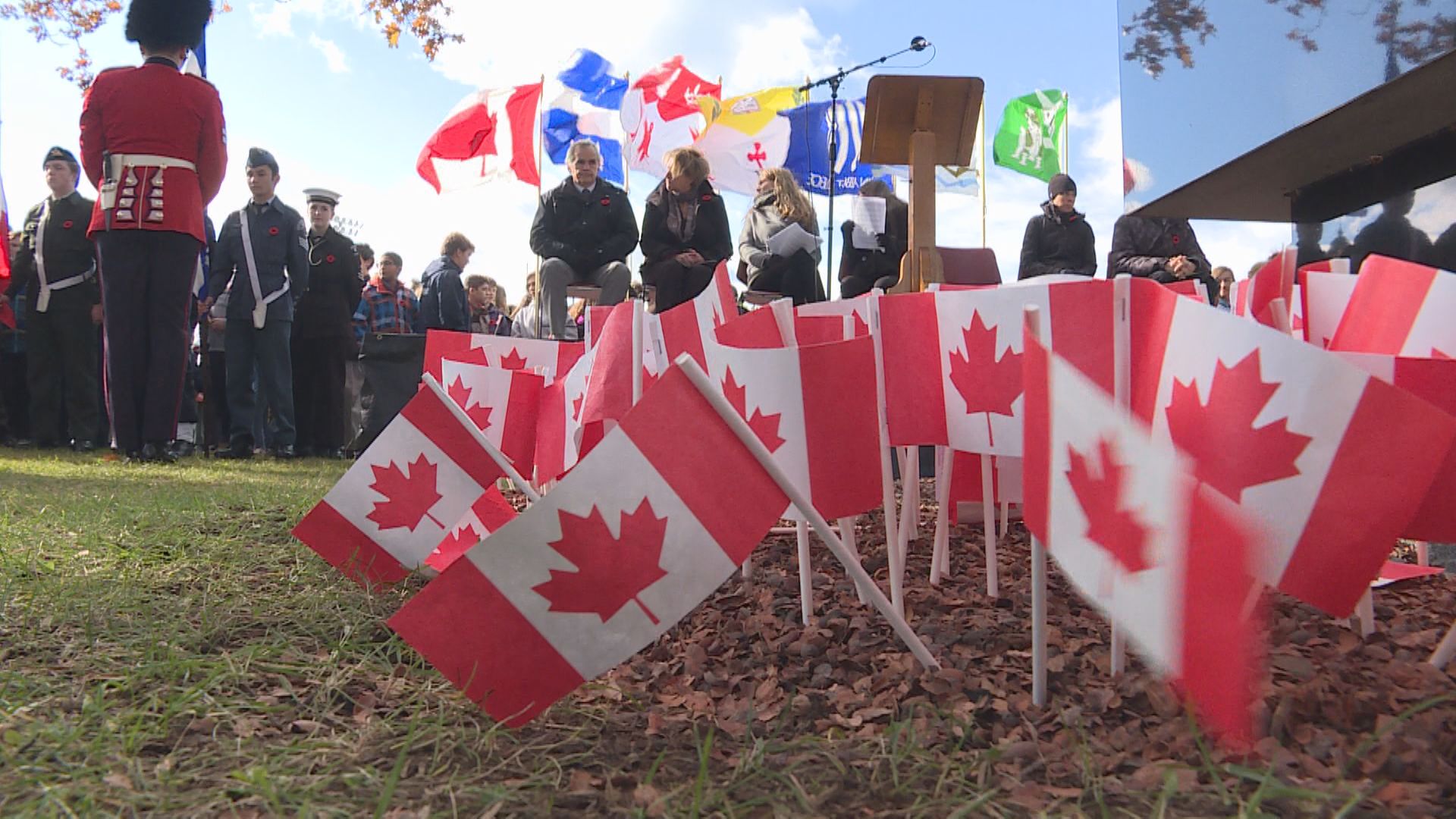 It was also a learning opportunity for the students, but the ceremony was even more poignant for college director general John Halpin. As he watched the elementary school kids plant small paper Canadian flags at a monument in honour of fallen soldiers, he fears one day someone may be planting flags and poppies in their memory.