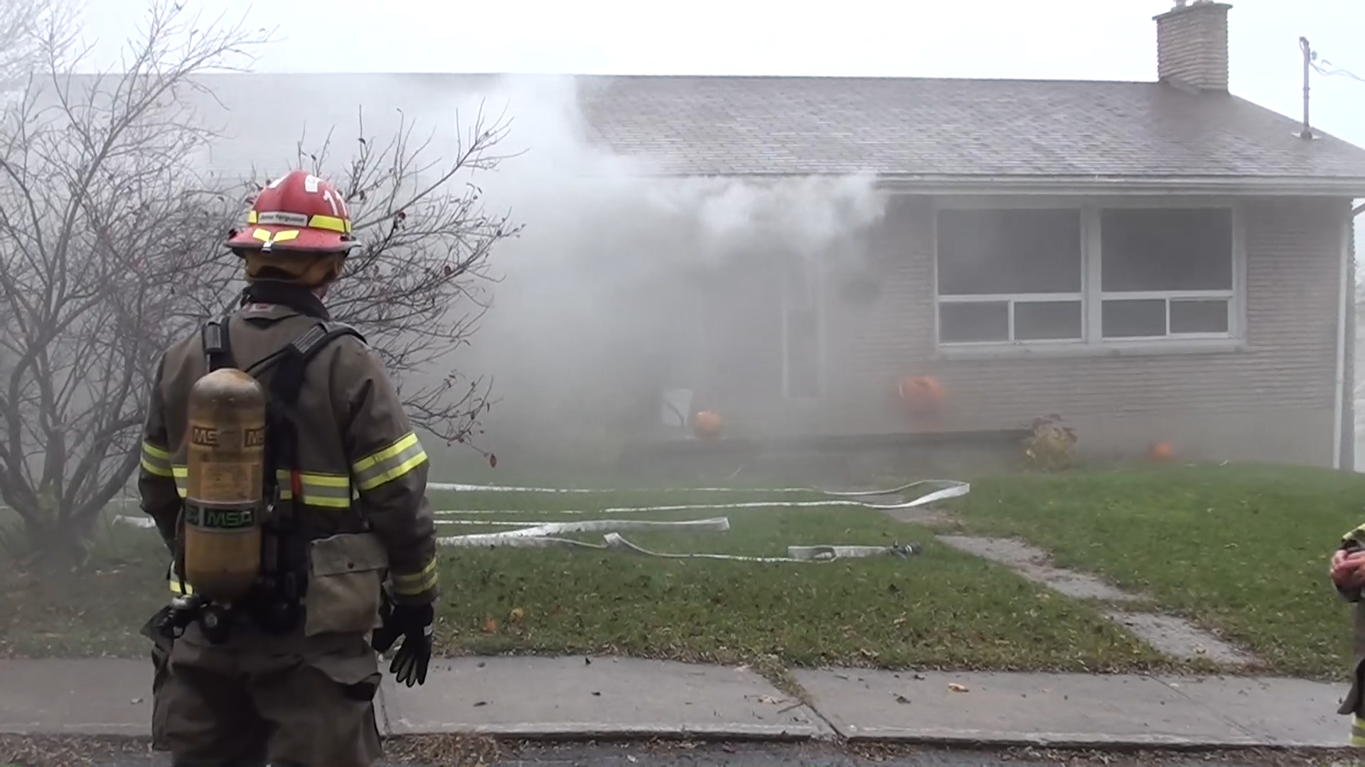 Firefighters say the homeowner arrived at the house during a lunch break and was met by a wall of smoke when he opened the door. He immediately called 911.