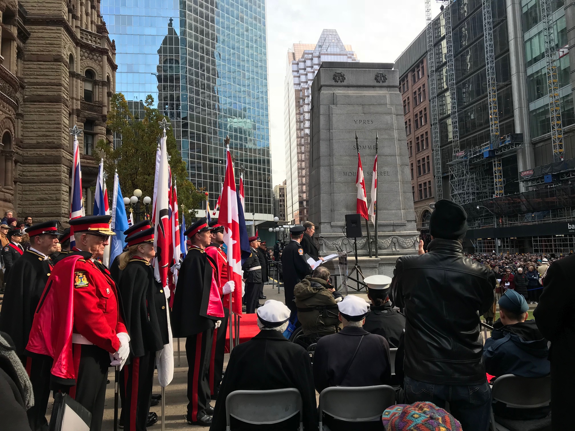 A service held outside of Toronto’s Old City Hall Sunday honoured those who dedicated their lives to serving the country, and this year’s ceremony paid special tribute to the 100 year anniversary of Armistice Day, when the armistice that ended the First World War was signed on November 11, 1918.