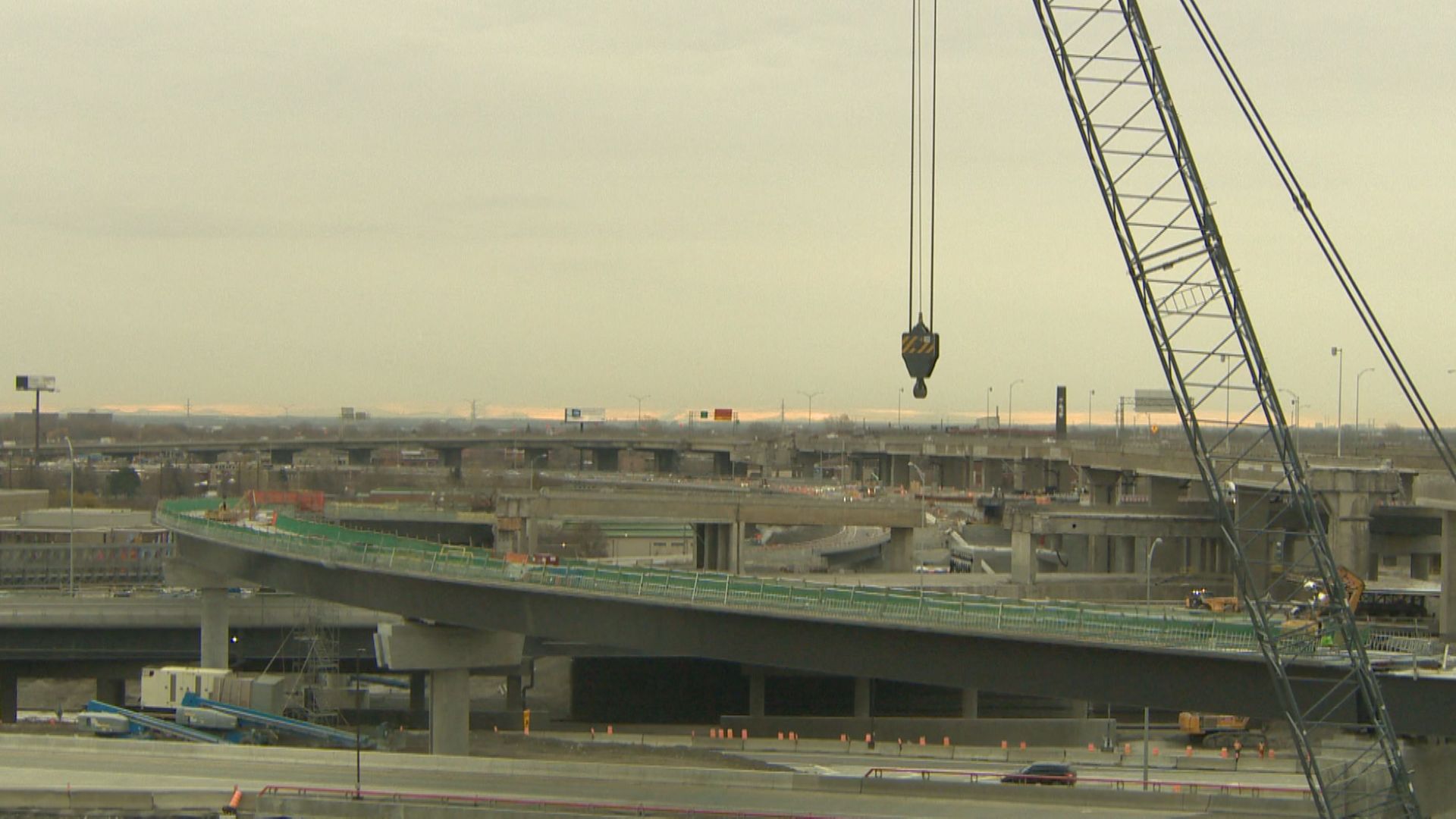 The work is necessary and tricky: the old concrete northbound lane of Highway 15 is coming down, but the lane is 25 metres in the sky. Work also has to pause for 45 trains that pass every day.