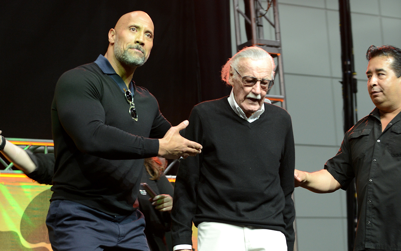 At last year’s Comic Con in Los Angeles, Lee spoke of Johnson saying, “He is one of the best action actors in the business, one of the nicest guys in the business, one of the biggest, strongest guys in the business, and when you see him I want you to remember he was 97 lbs. until I gave him all those instructions and how to build himself up.”