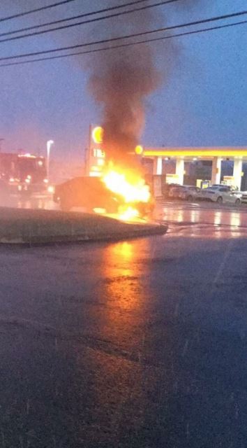 Both drivers and the three passengers in the SUV were uninjured, according to police, but the Volkswagen sustained significant damage after catching fire.