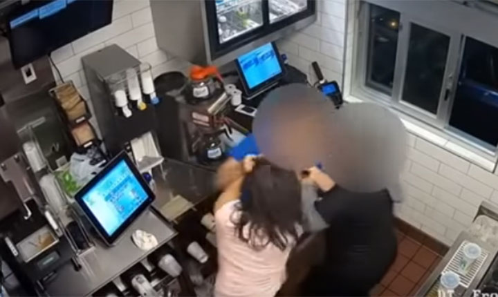 Security footage shows the woman and a manager fighting in the drive-thru area of the McDonald’s.
