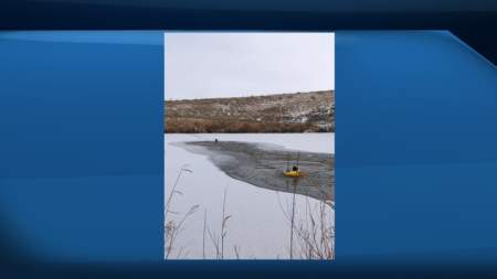 “We went to the other side of the river and tried to scare the deer over to the open area and he made it to shore but he was too tired to crawl up the shoreline,” said Moose Jaw firefighter Christopher Luiten.
