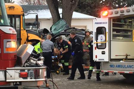 The school bus driver and two of the 16 students received minor injuries. They were treated on scene by Medavie Health Services West paramedics.