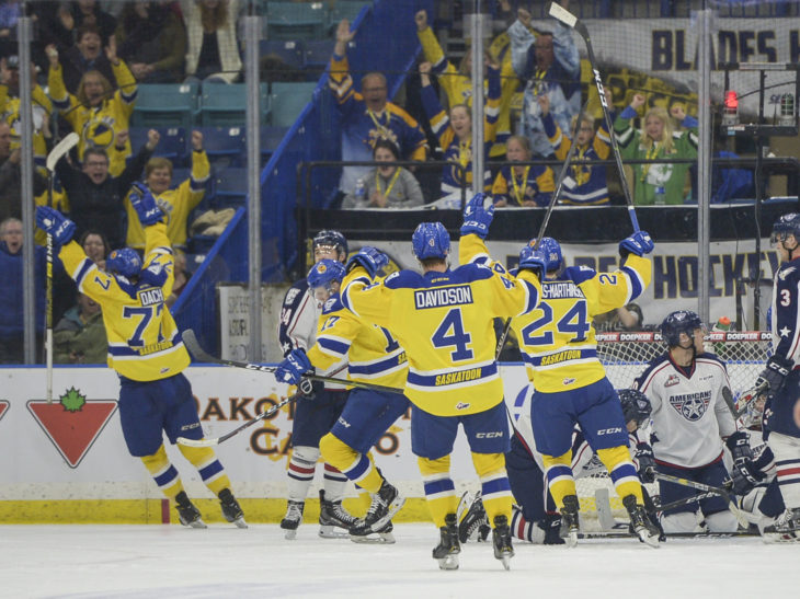 It was a memorable night for second-year defenceman Randen Schmidt, whose first career WHL goal became the eventual game winner for the Blades.