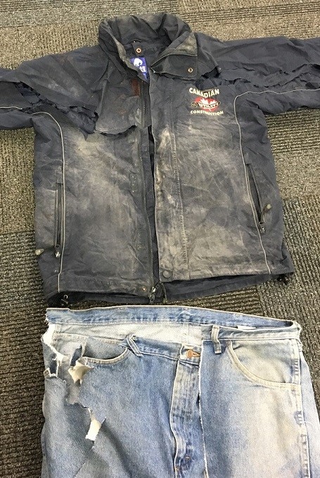 The victim was wearing a grey baseball cap, a black leather jacket with a St. Vital Midgets hockey patch and a windbreaker with a Canadian Utility Construction patch. He was also wearing blue jeans and blue Skechers shoes.