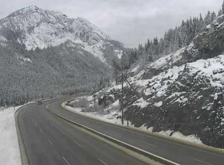 Those heading east on the Trans-Canada Highway can expect some snow overnight between Eagle Pass and Rogers Pass and five centimetres of snow on Monday, according to Environment Canada.