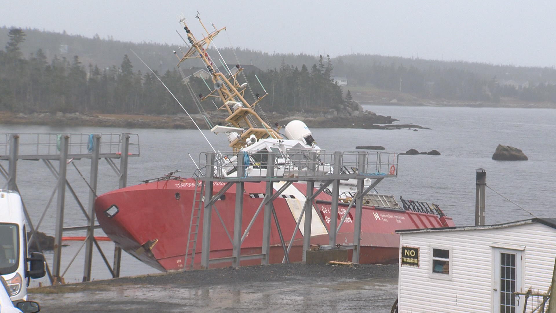 A boom has been put in place around the vessel at Sambro Head, a coastal community 30 kilometres south of Halifax that is home to fishing vessels and a fish processing plant.