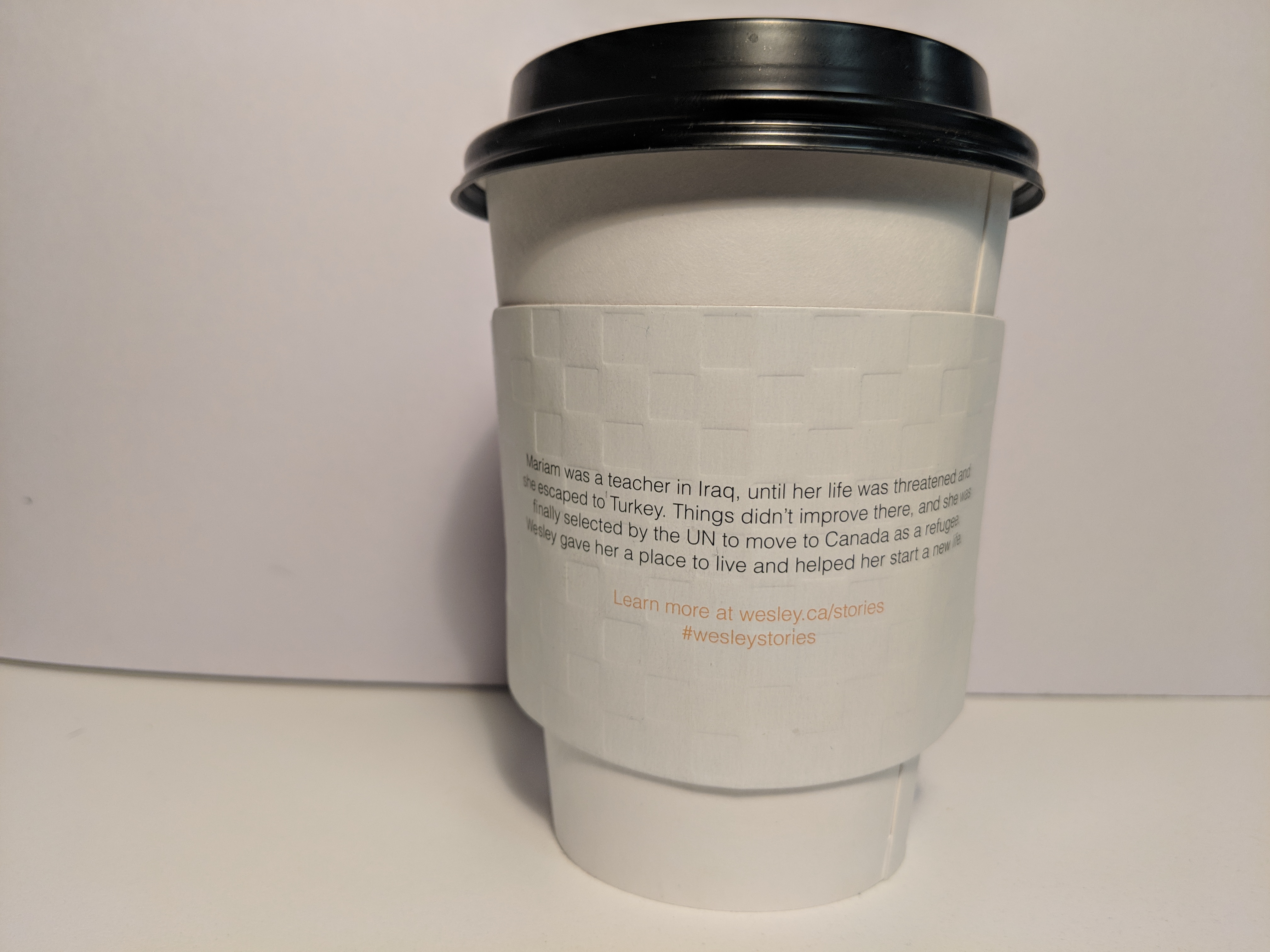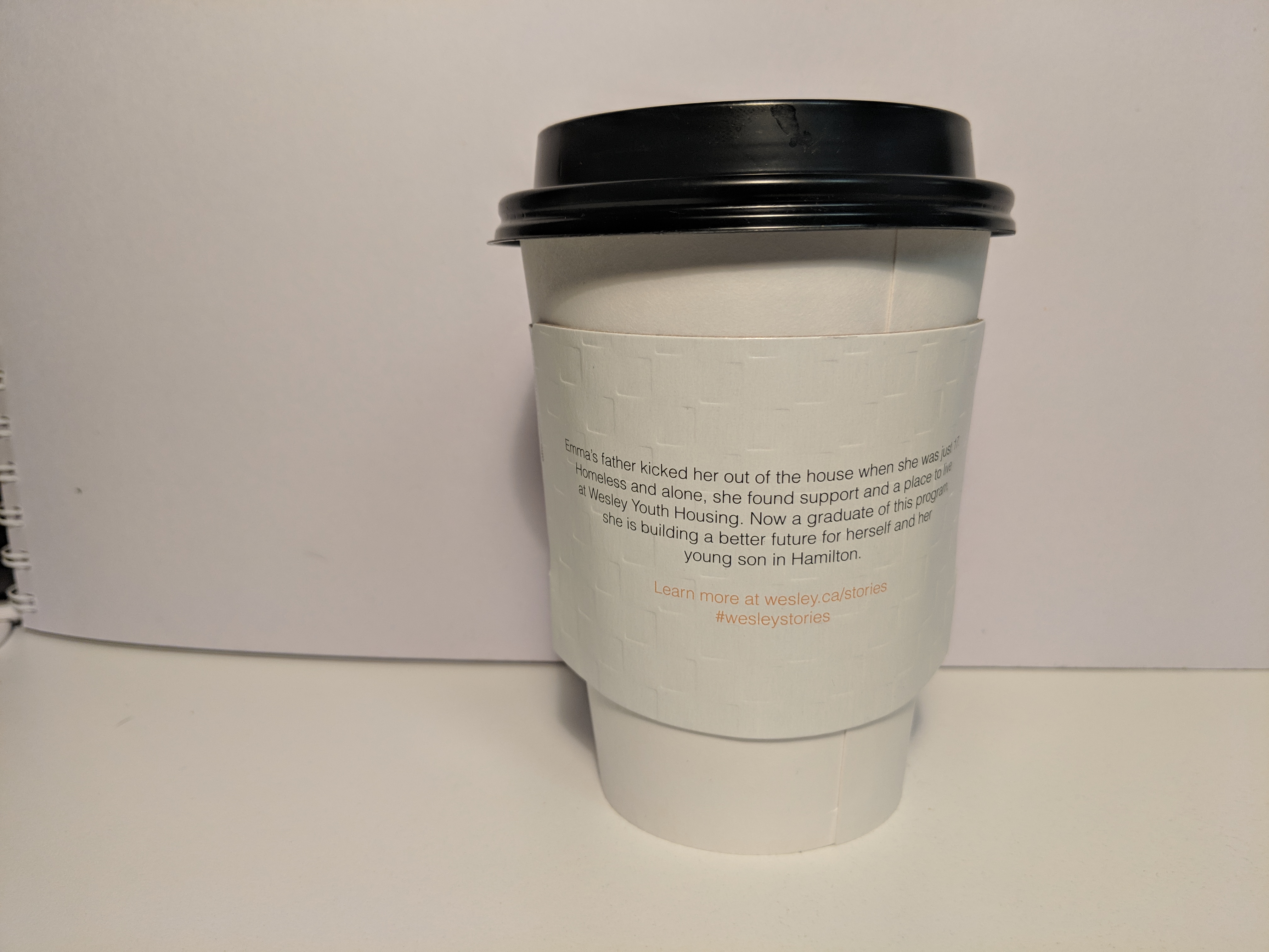 A series of coffee cup sleeves featuring the faces and success stories of people who have accessed services at Wesley has been released at cafes across Hamilton.