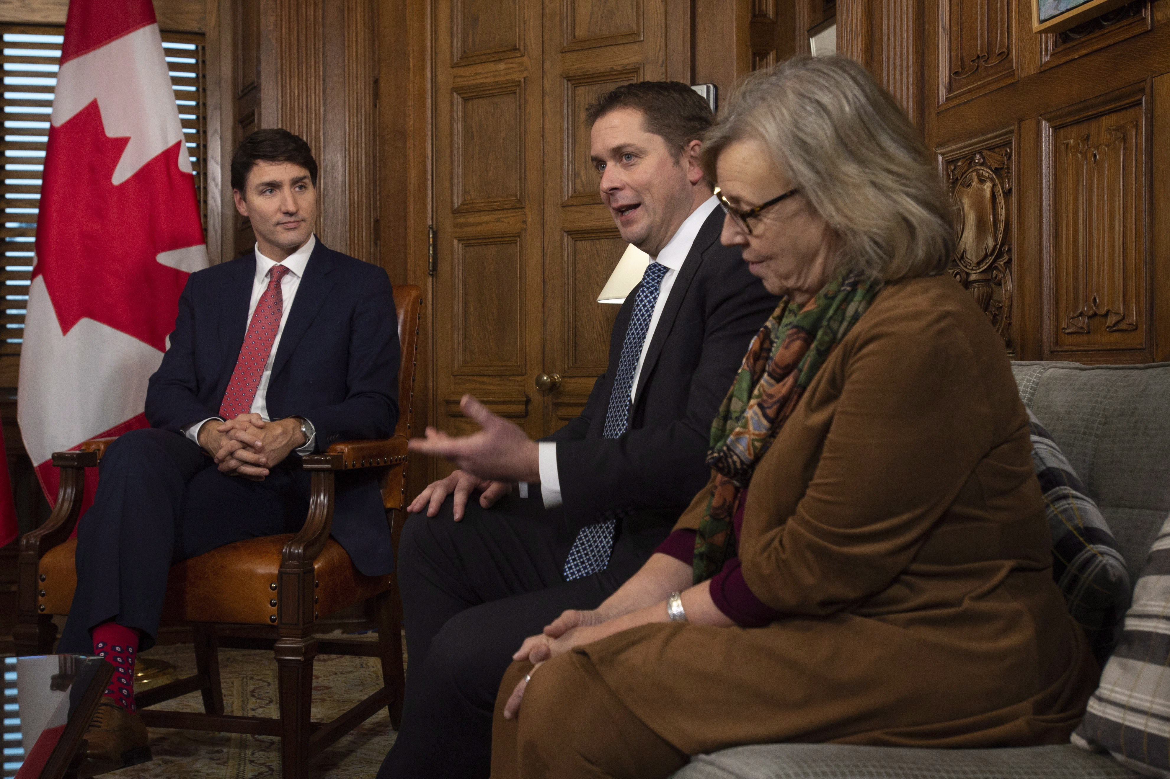Trudeau met with Conservative Leader Andrew Scheer, the NDP’s Jagmeet Singh, Green Leader Elizabeth May and interim Bloc Québécois Leader Mario Beaulieu — a rare cross-party leaders’ confab Scheer requested Monday after reductions to francophone services announced two weeks ago by Ontario’s Progressive Conservative government.
