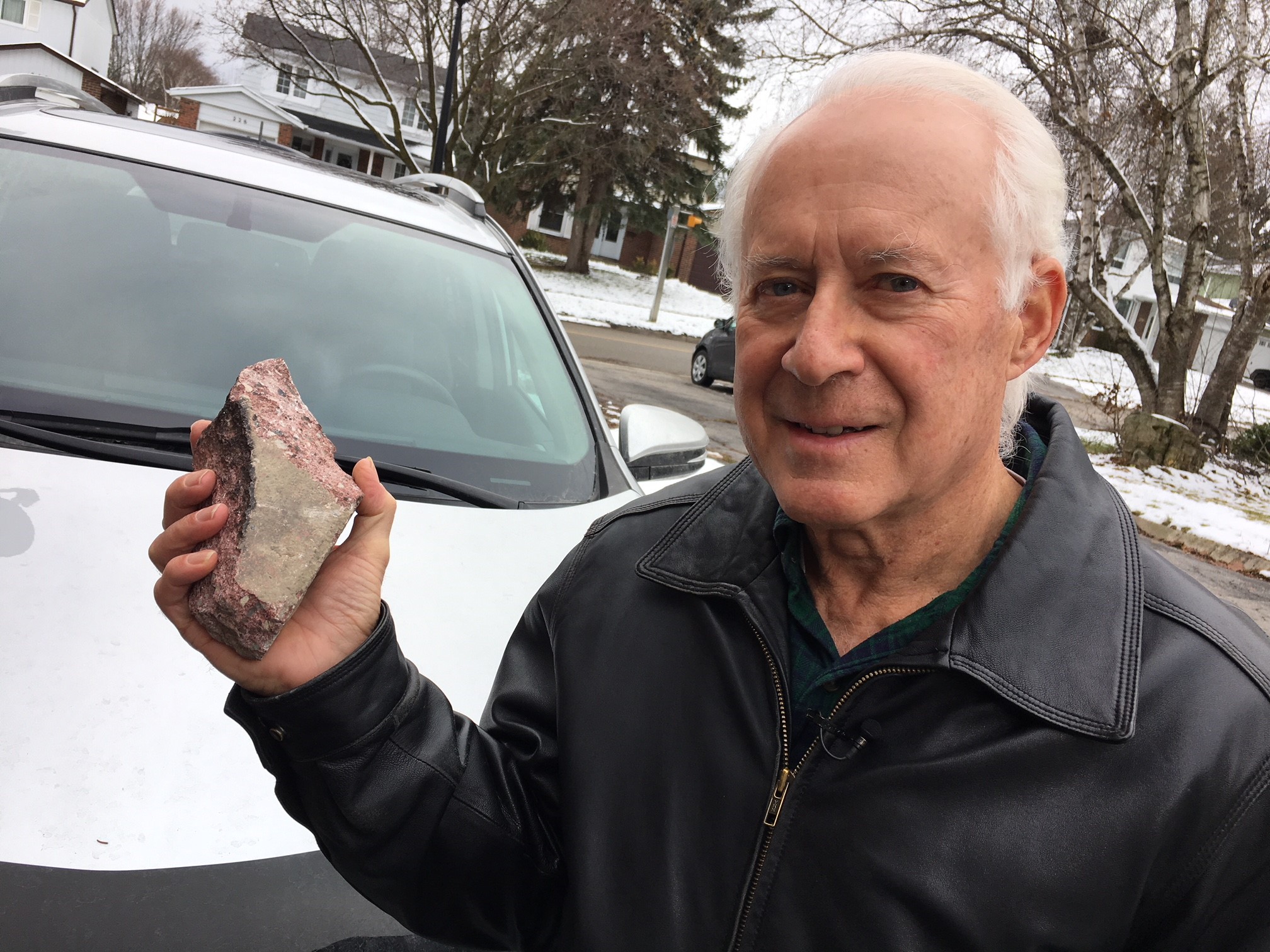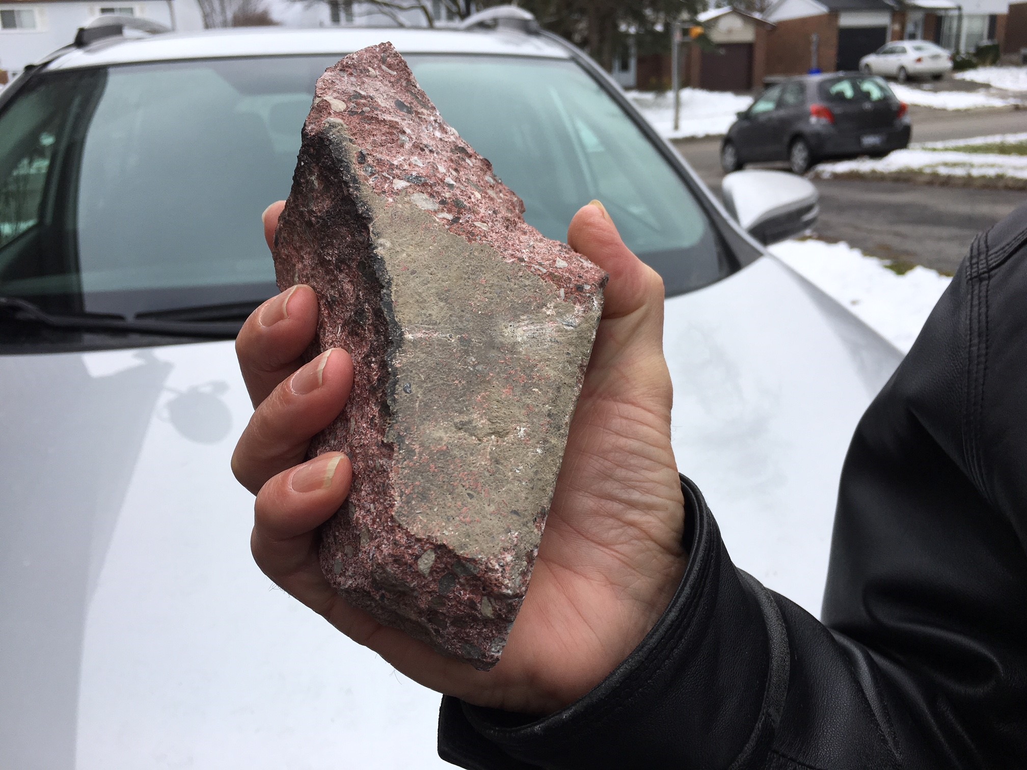 The three-pound piece of concrete, which Wasylenky believes flew out of the bucket of one of the passing trucks, destroyed various interior components of his car, but luckily, not him.