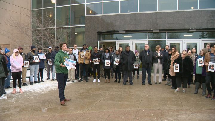 Close to 100 University of Regina students and faculty stood outside the Riddell Centre on Thursday afternoon rallying behind the safe return of Promise Chukwudum, known to friends and family as “Max.”