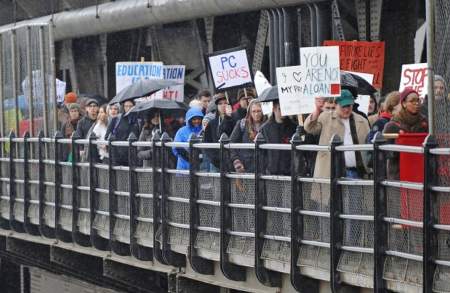 EDMONTON – A crowd of approximately 300 students from across the province marched on the legislature Wednesday, angry at Premier Alison Redford for breaking her promise on funding for post-secondary education.