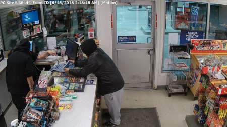 Two men, armed with a knife, demanded cash, lottery tickets and cigarettes from an employee at the Petro-Canada gas station on Selkirk Avenue in the early morning of June 18.