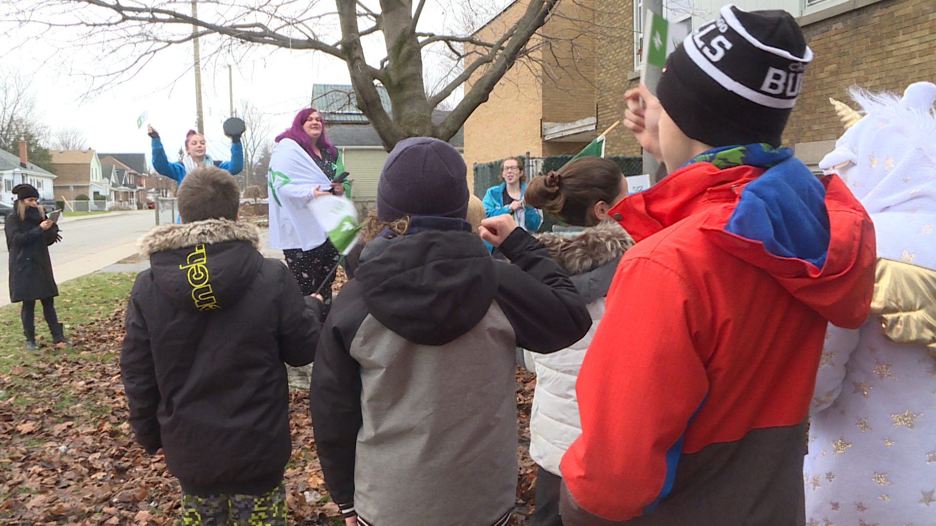Protesting the Francophone cuts continues in Kingston with residents gathering at Kingston and the Islands MPP Ian Arthur’s office December 1.