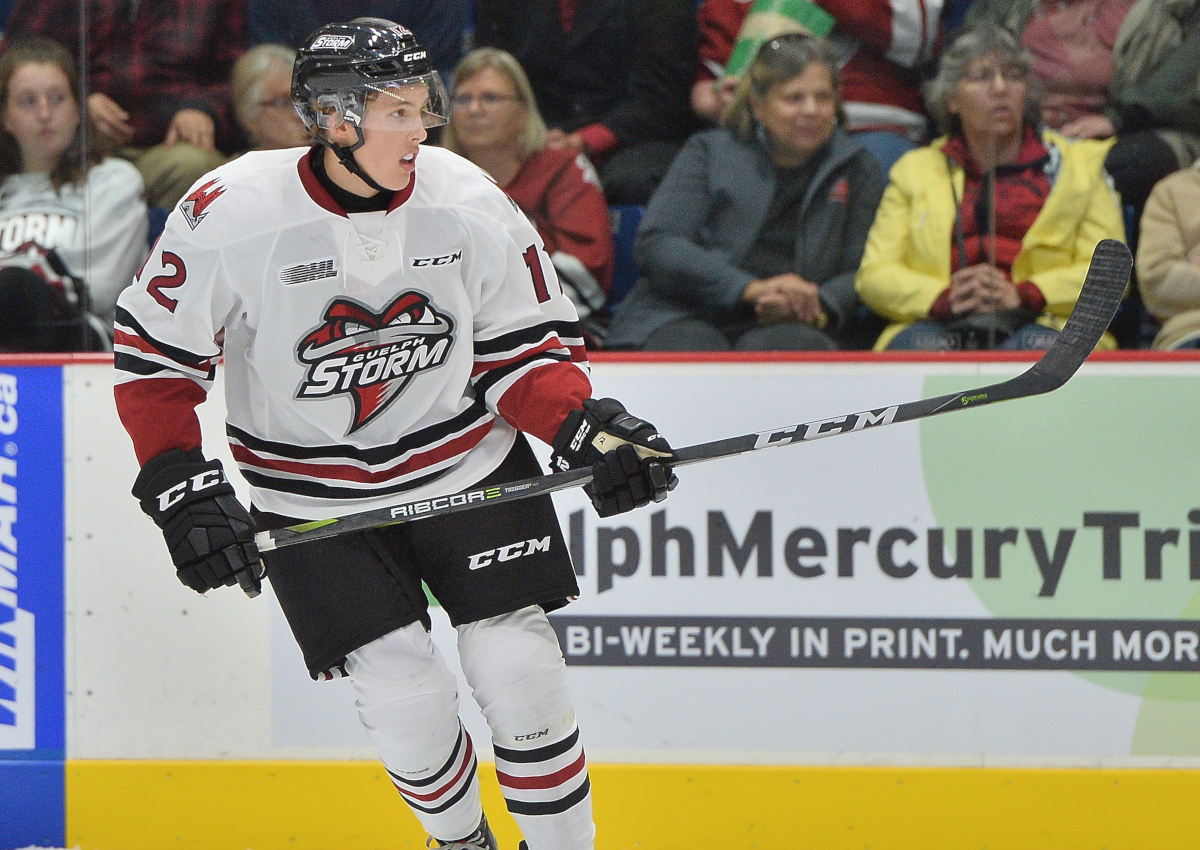 Keegan Stevenson answered exactly three minutes later for Guelph to even the score.