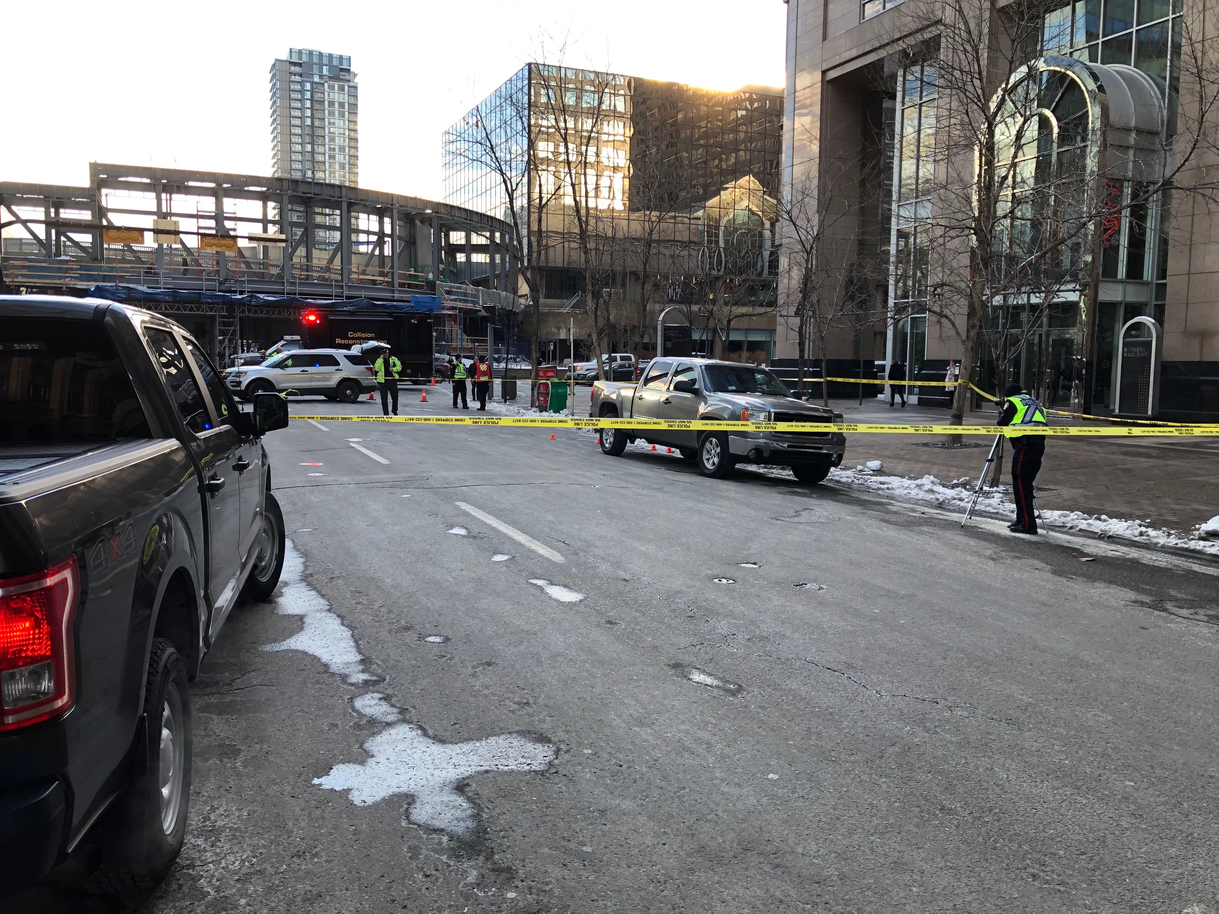 First responders were called to the intersection of 9 Avenue and 2 Street S.W. at about 1 p.m. for reports of a collision.