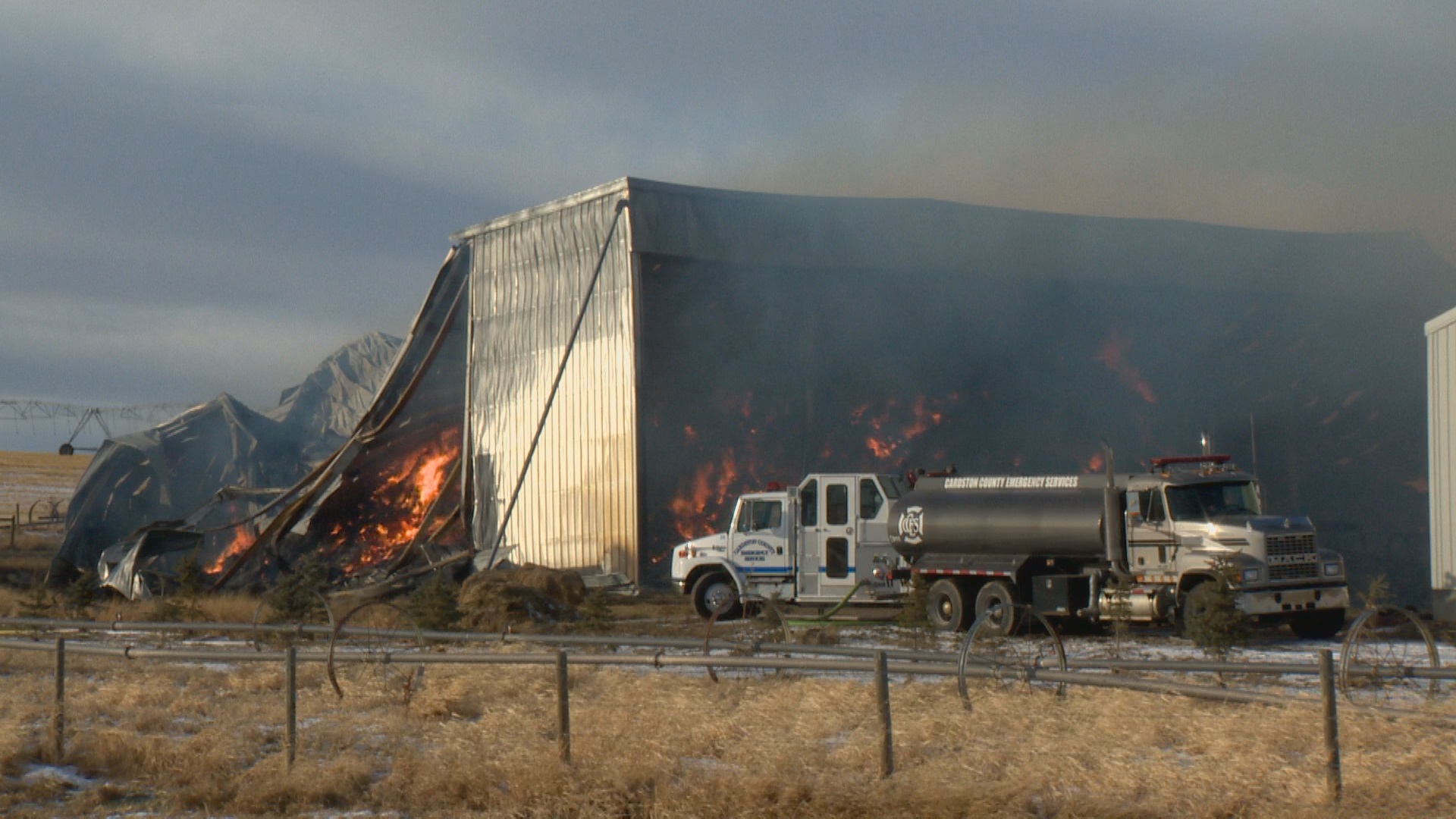 “Just before 5 a.m. this morning we were dispatched to a structure fire with a hay barn shed fully engulfed,” said Dan Melvin, fire chief with Cardston County Fire Services.