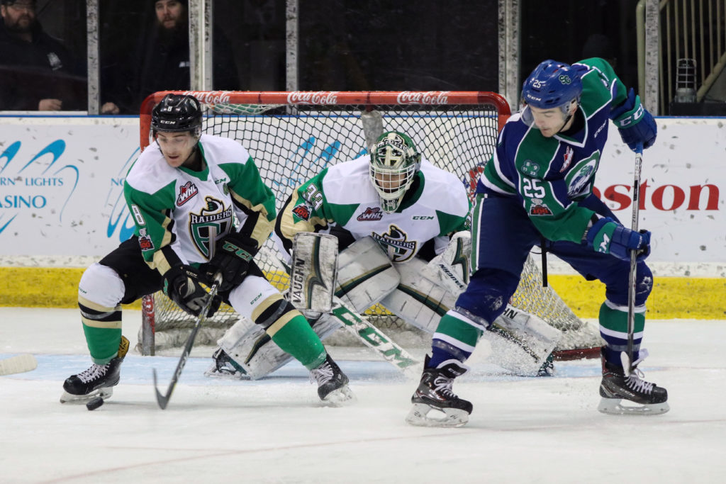 Brett Leason and Brayden Pachal scored for the Raiders. Leason now has at least a point in 28 straight games.
