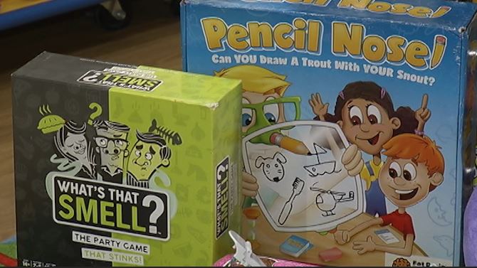 Fyfle said her personal favourite is “Pencil Nose,” a Pictionary-style game where you draw with your nose and a dry erase marker. She said another popular option, especially with kids, is “What’s That Smell.”