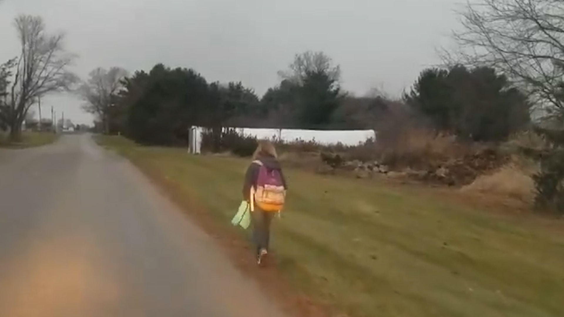 Matt Cox posted a video showing his daughter walking on the side of a road early Monday.