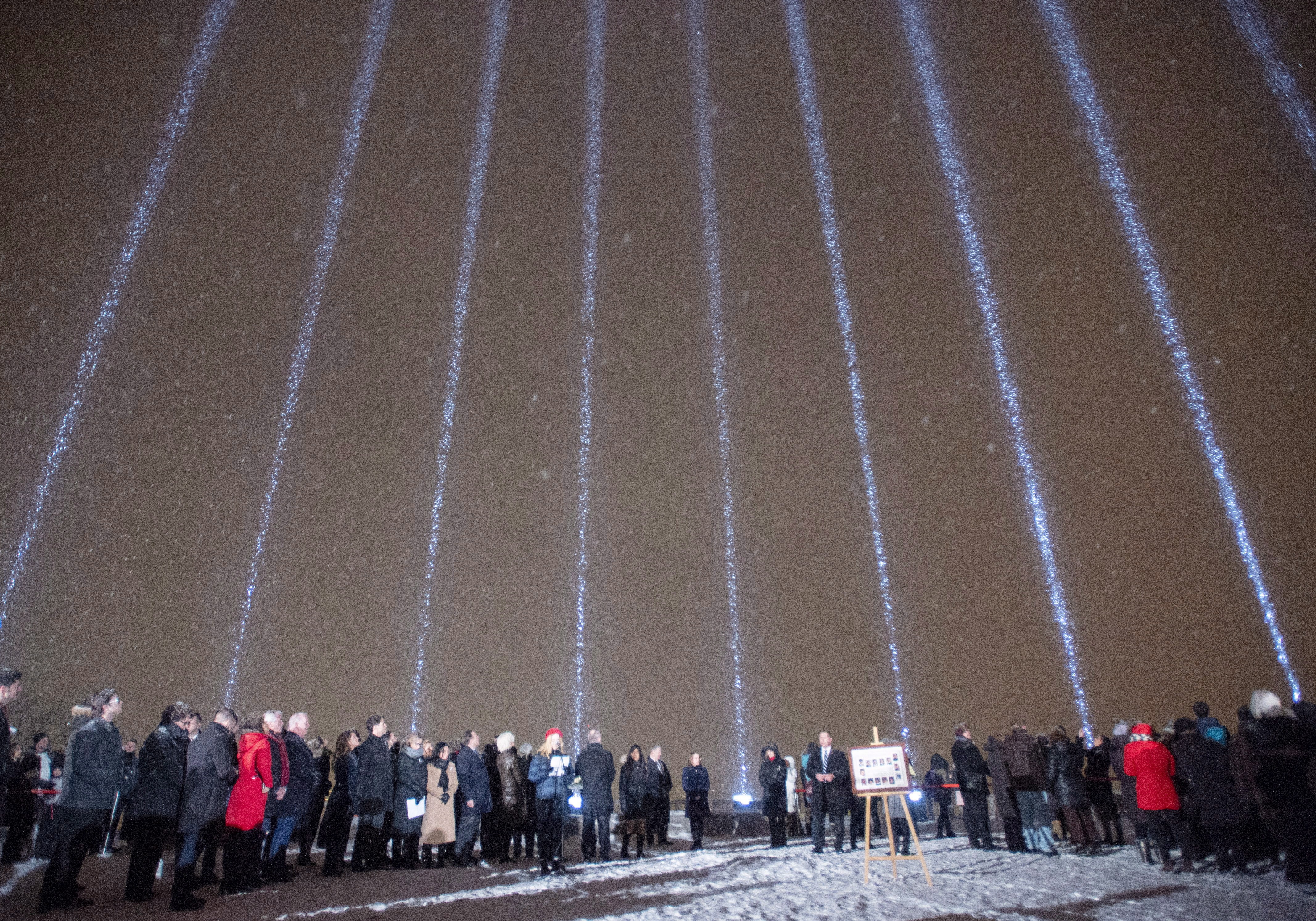 In Montreal, the ceremony was held on Mount Royal to commemorate the lives cut short by violence and hatred. In the darkness, 14 beams of light illuminated the sky from the top of the mountain to honour each victim.