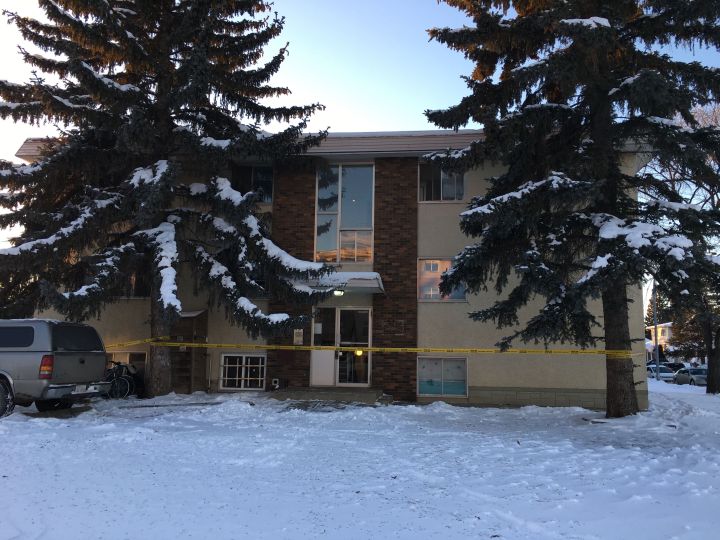 A Global News crew at the scene noted police tape surrounding the Allen Manor apartment building on Thursday afternoon. Three police cruisers and a forensics unit vehicle were at the scene. Police blocked off the building’s entire parking lot and alley, however, police said that was only done in order to give investigators room to work.