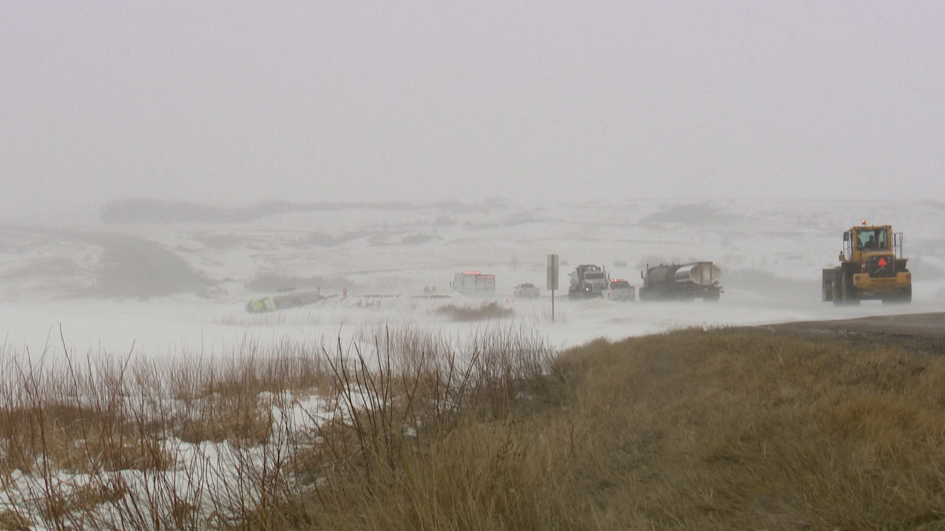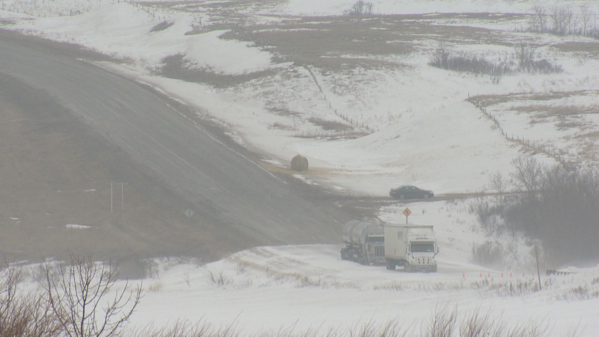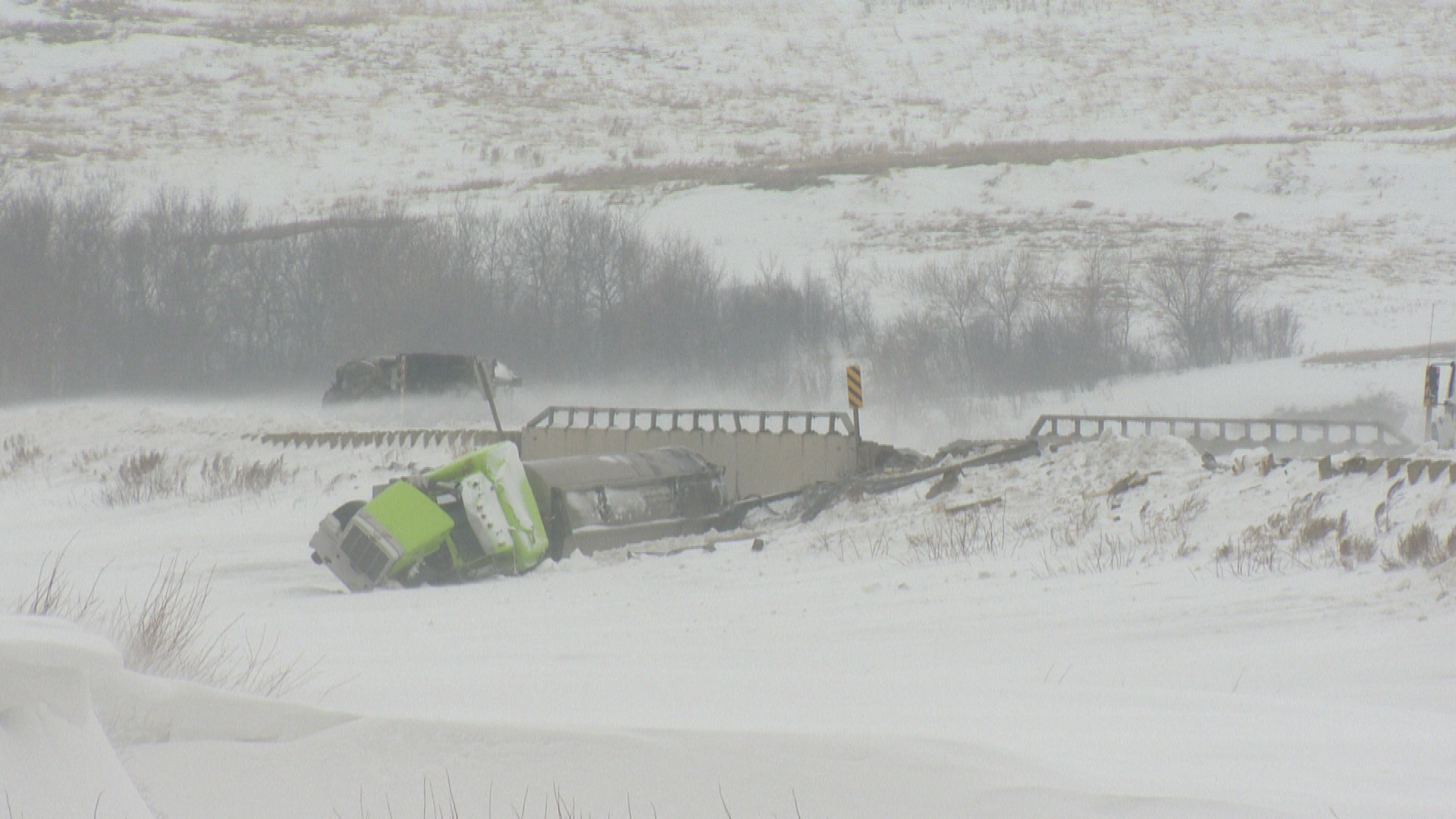 Late Wednesday night a tanker carrying two trailers rolled on the Buffalo Pound Causeway. The first trailer rolled and hit an embankment but did not breach. The second, a pup trailer carrying used oil, did suffer a leak.