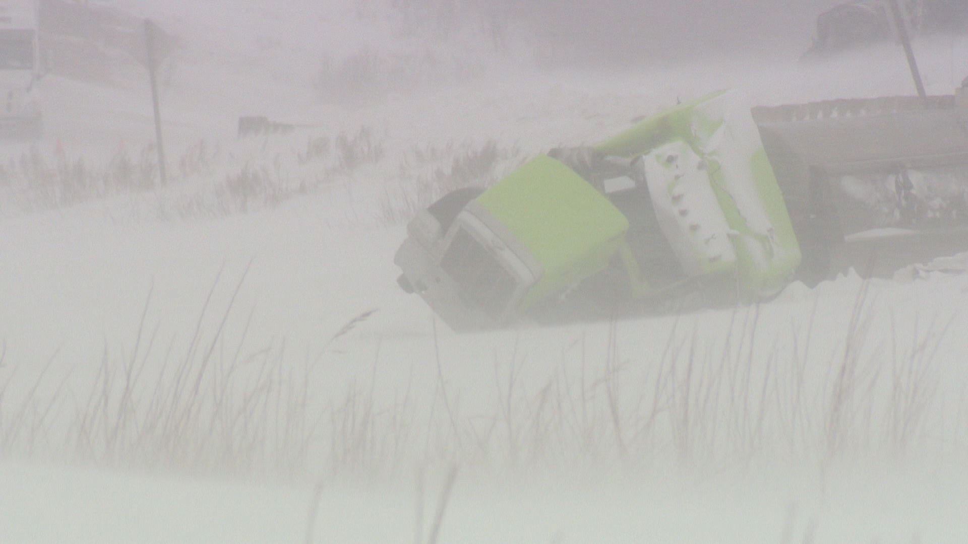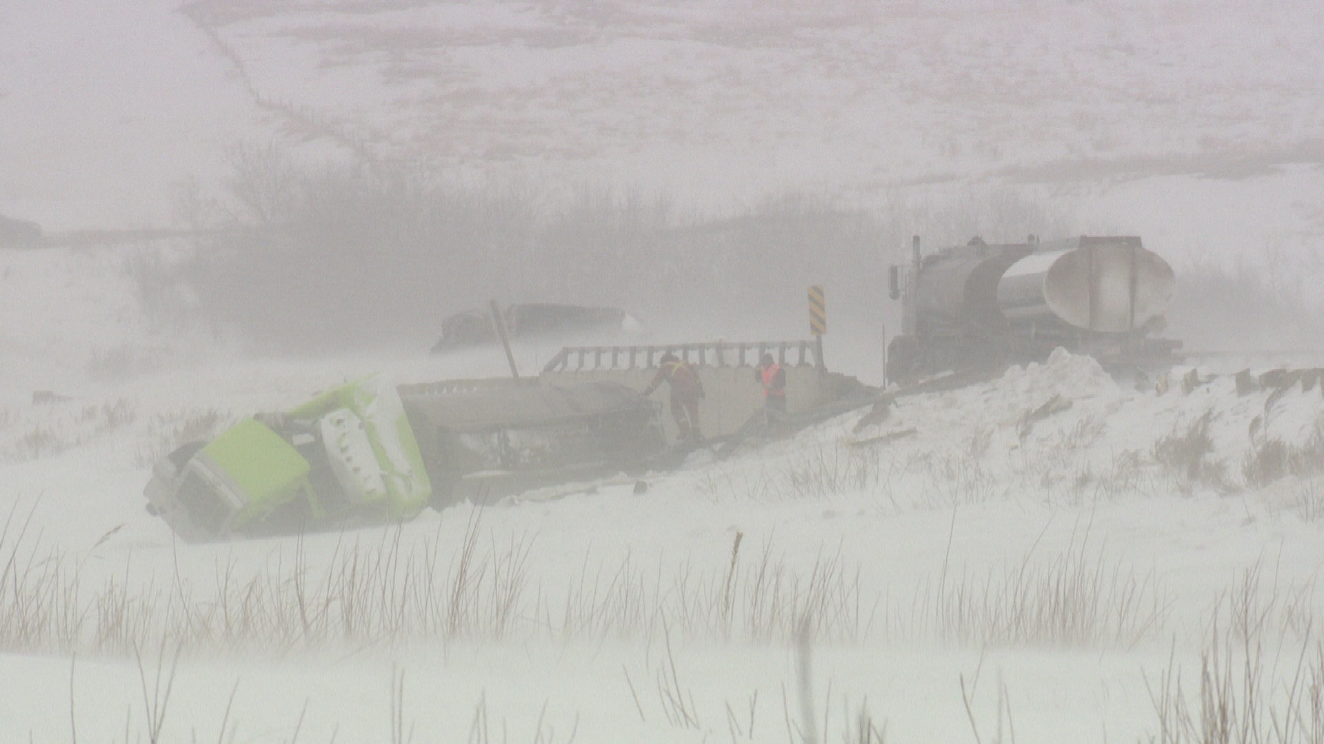 Salvaging the truck and trailers may not happen until Friday.
