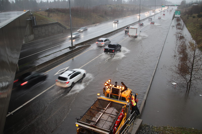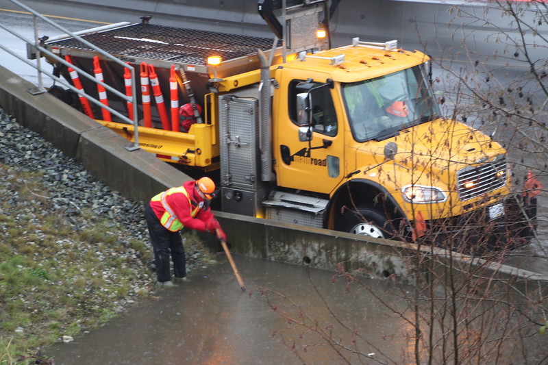 At lower elevations, heavy rain and wind is a problem for many commuters and travellers on Tuesday.
