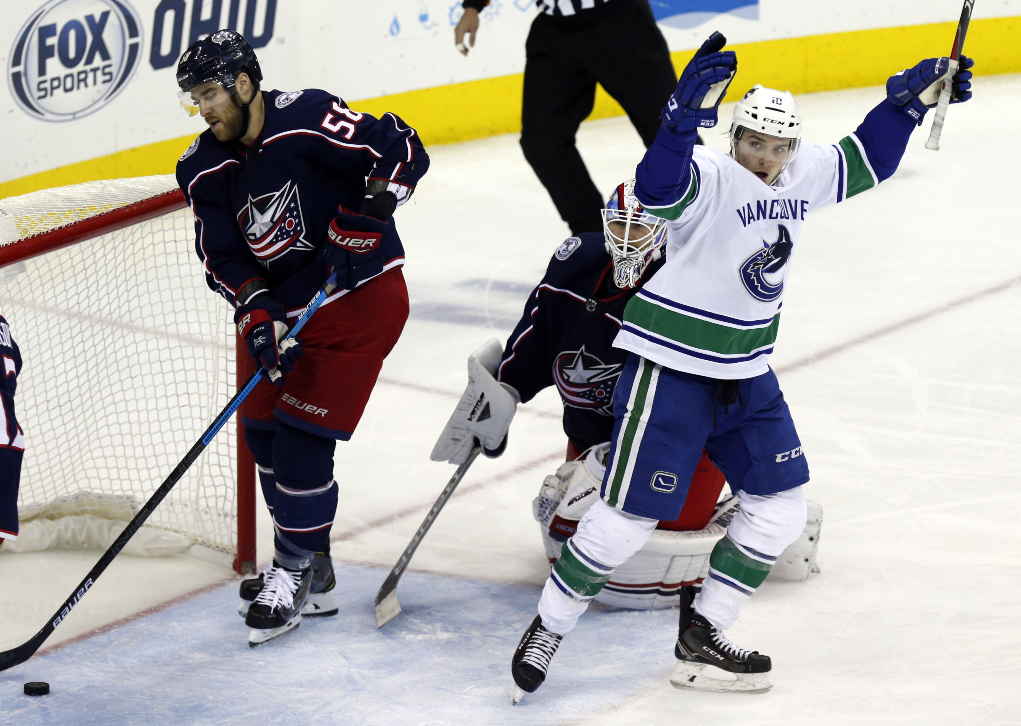 Jake Virtanen scored the tiebreaking goal with less than two minutes remaining and Jacob Markstrom stopped 34 shots as the Vancouver Canucks rallied to beat the Columbus Blue Jackets 3-2 on Tuesday night.