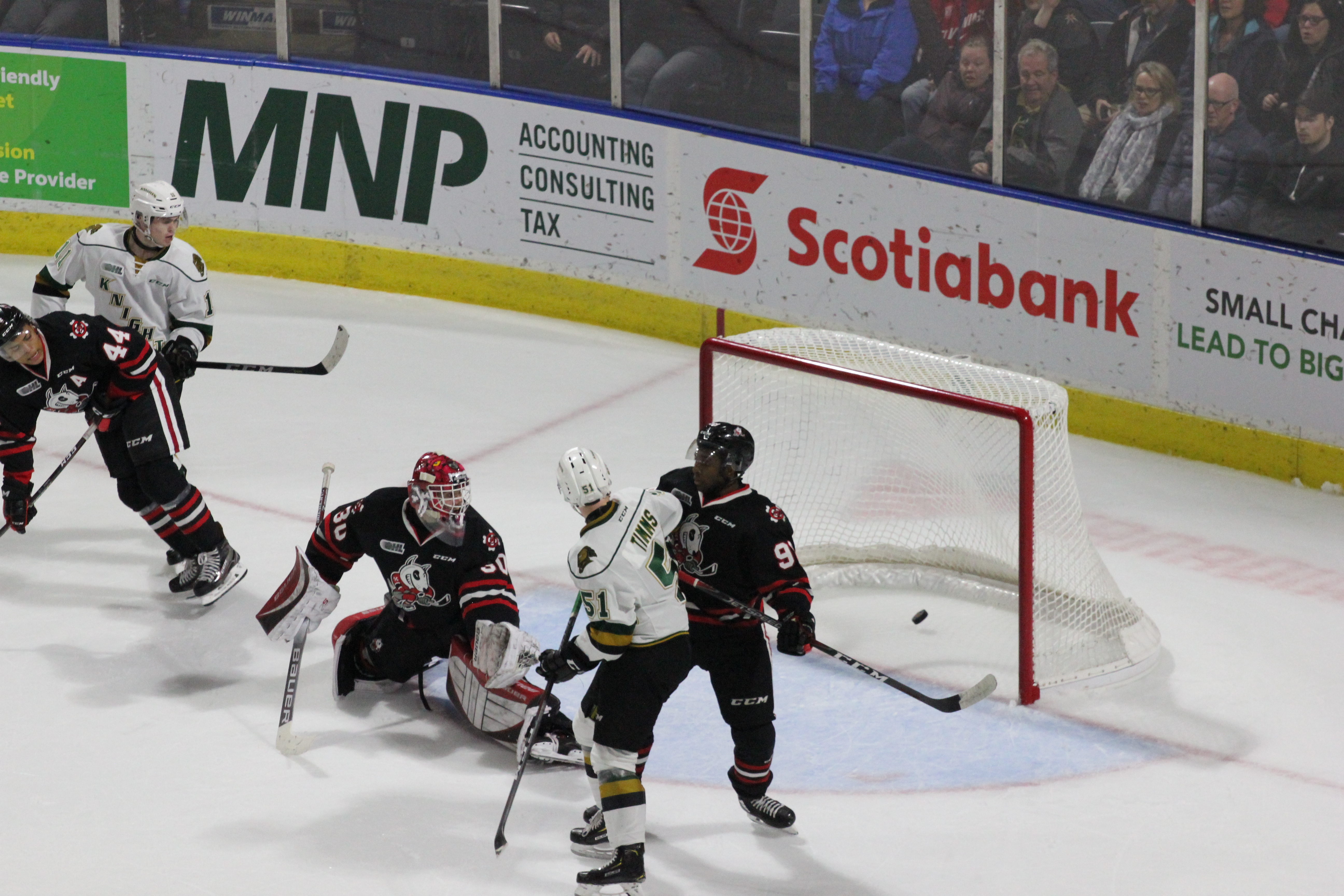 Niagara went ahead on a power-play goal by Oliver Castleman at 5:07 of the second period, and then Londoner Will Lochead tied the game on a Knight power-play goal against his old team. The puck bounced to Lochead in the slot, and he ripped a wrist shot into the IceDogs’ net with 3:28 to go in the middle period.