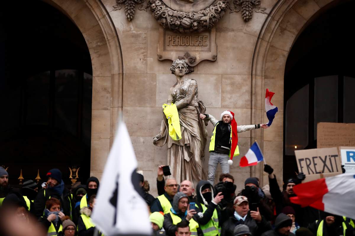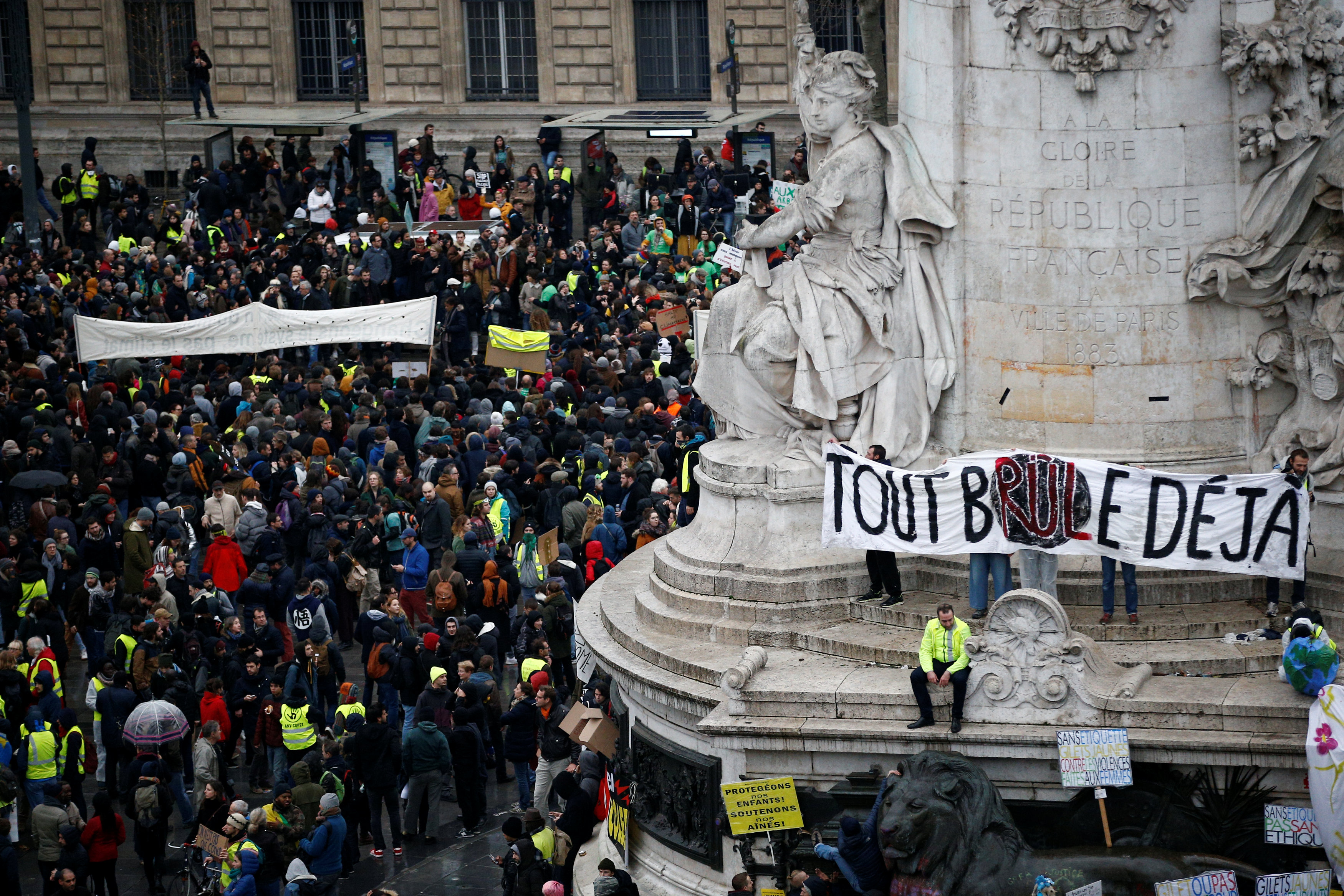 Pierre Lamy, a 27-year-old industrial worker wearing both a yellow vest and a French flag over his shoulders, said the movement had long stopped being just about a fuel tax hike that sparked the protests in November but was now focused on economic justice.