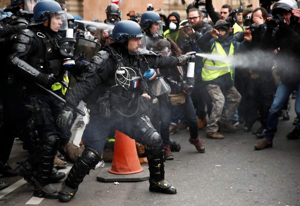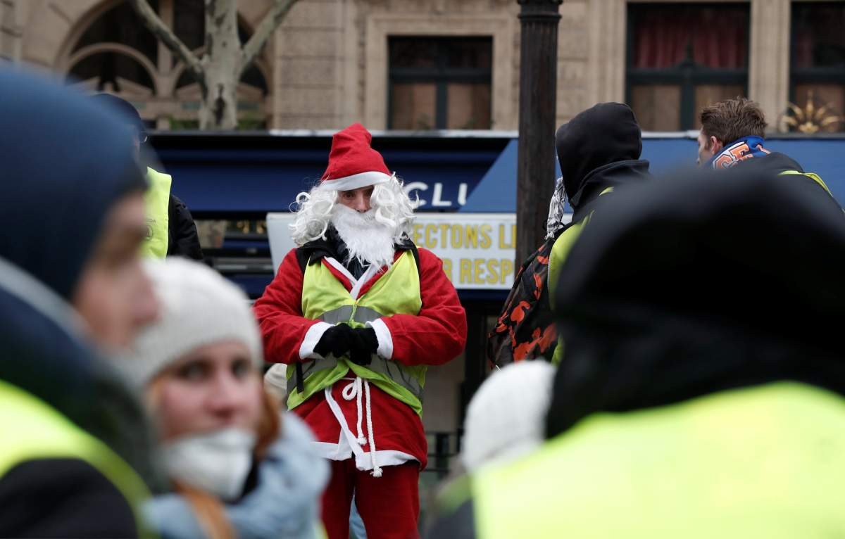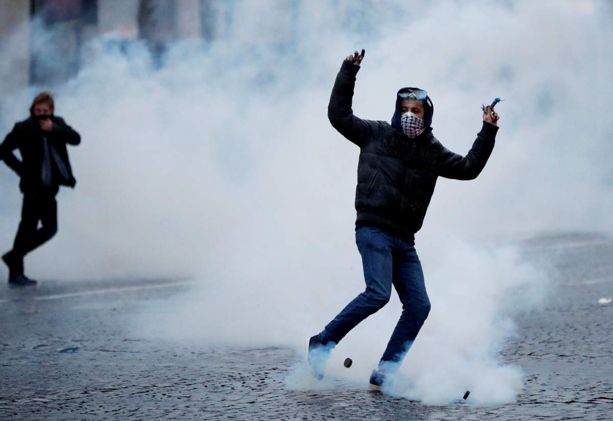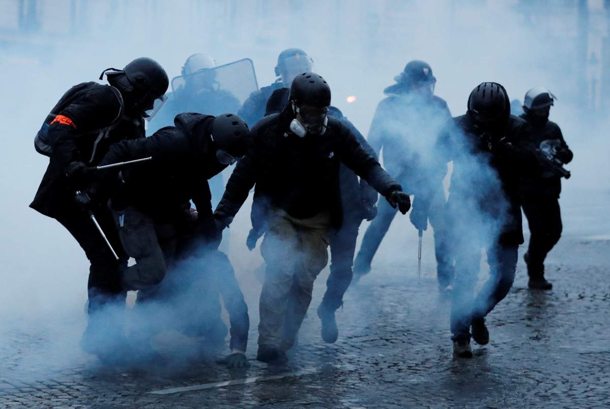 A few thousand people marched up and down the famed shopping street in Paris, a spirited yet peaceful gathering that sunk into violence as the afternoon wore on. Riot police clashed with demonstrators as the occasional tourist darted from their hotel or a brave Christmas shopper took a peek at the neighbourhood’s mostly boarded-up storefronts.