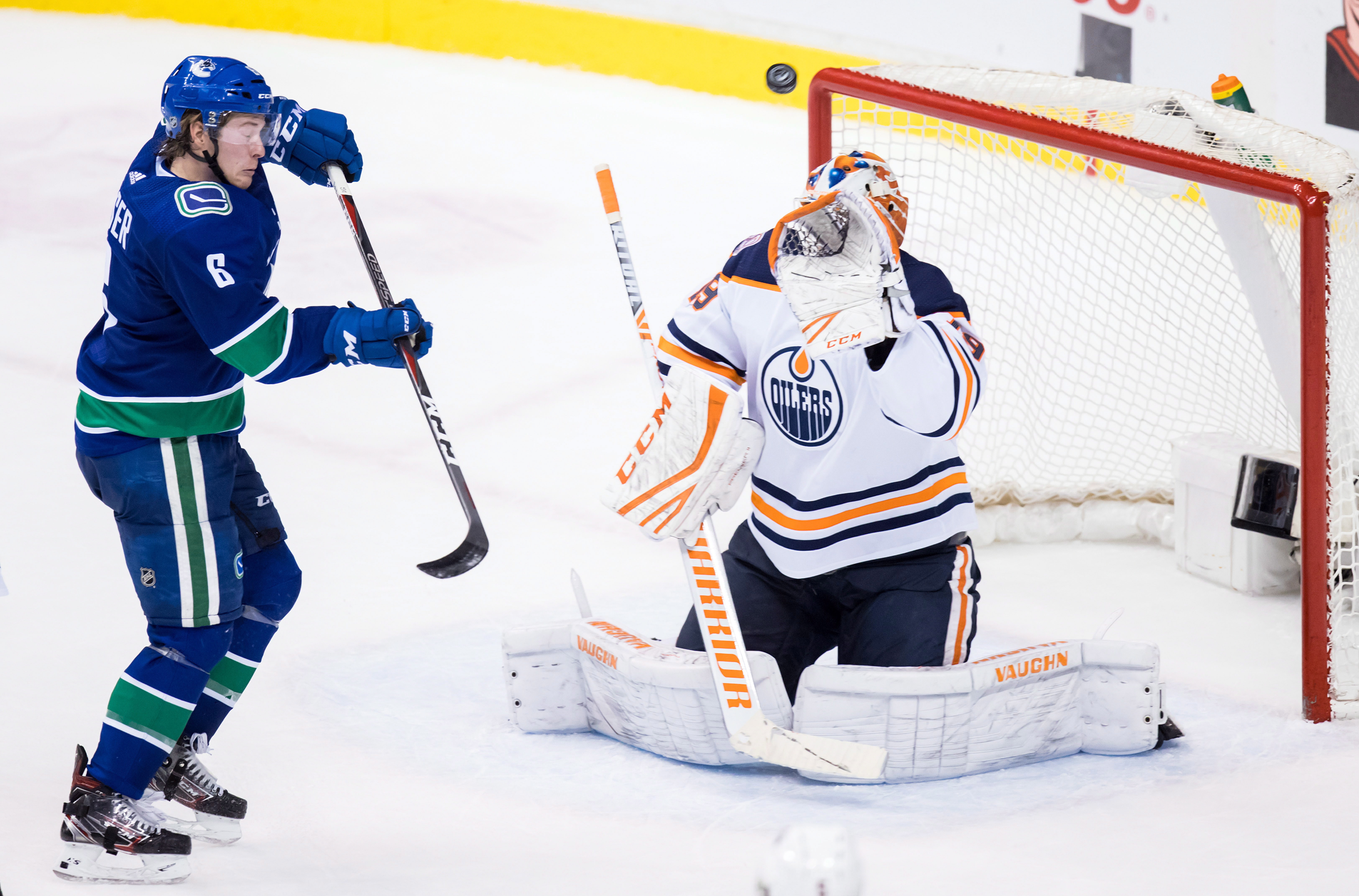 Elias Pettersson ripped a shot over Koskinen’s glove for another power play goal early in the third. Alex Chiasson sniped his 15th of the season with 4:10 left; one-timing a pass from Connor McDavid. Bo Horvat sealed it for Vancouver with an empty net goal with 1:42 left.
