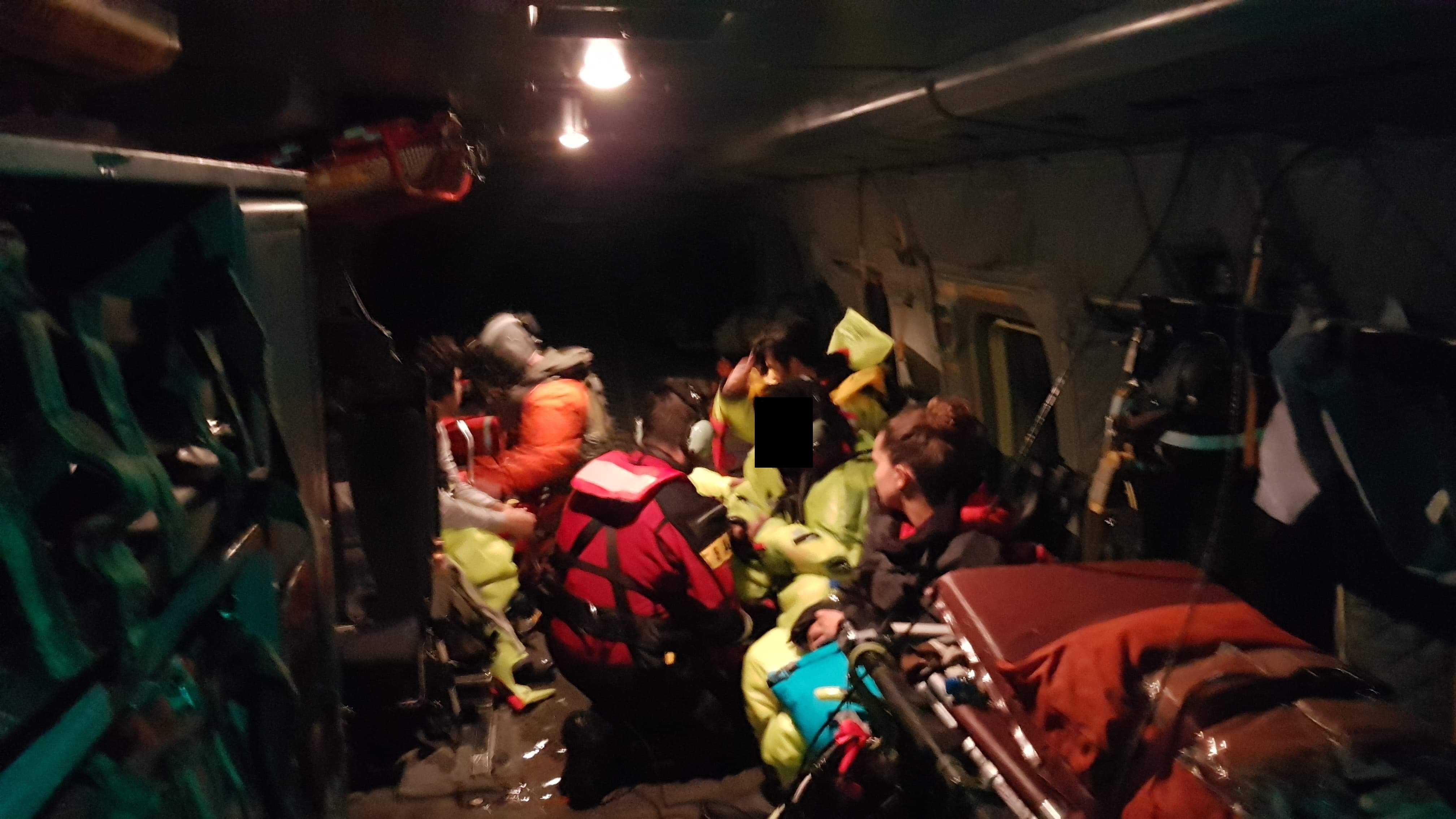 The sailboat had been beaten up in the stormy seas, but a tweet from Joint Task Force Atlantic says that the four crew members were safely hoisted into a helicopter by a search and rescue crew and have now been flown back to Halifax.