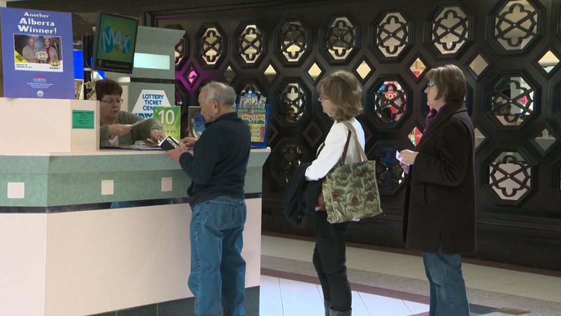Edmontonians lined up at lottery centres across the city Friday, in hopes of getting their hands on a piece of the prize.