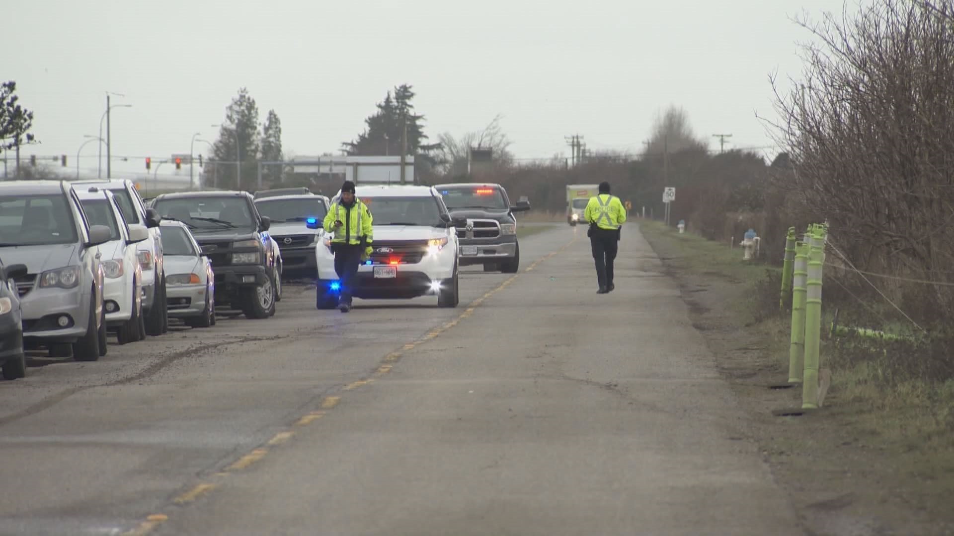 The victim, a woman in her 20s, was found on the shoulder of the road on Hornby Drive near Highway 99 after she was struck just after 6:30 a.m.