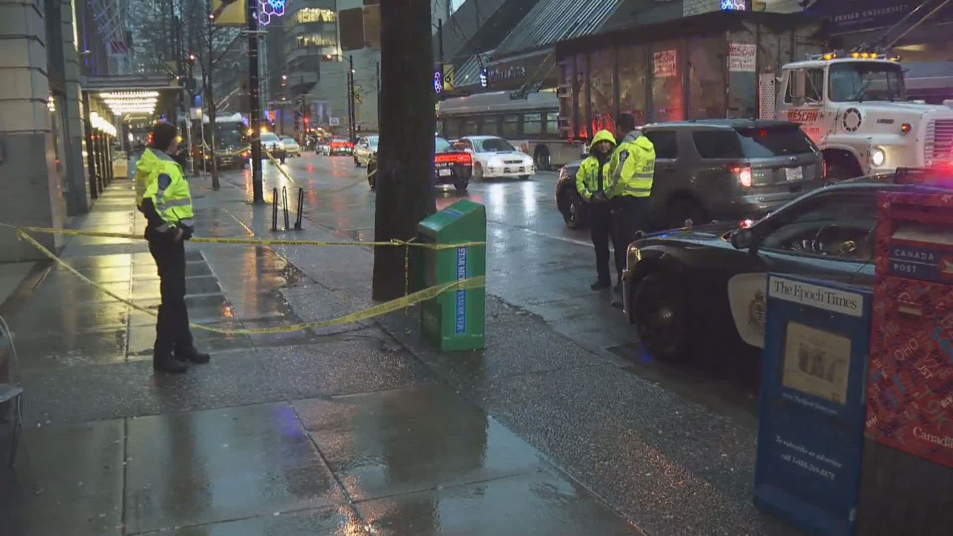Police received several reports of a man with a knife in the area of Hastings and Seymour streets around 7 a.m.
