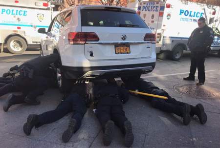 A group of New York City’s finest jumped into action on Tuesday to rescue a kitten that was stuck under an SUV.