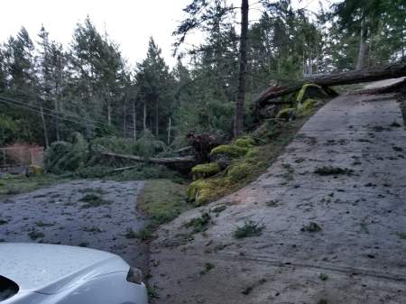 Outer Gulf Islands RCMP spokesperson Const. Brent Shemilt said the storm has knocked upwards of 50 trees over across the island, blocking roads and knocking out power lines.