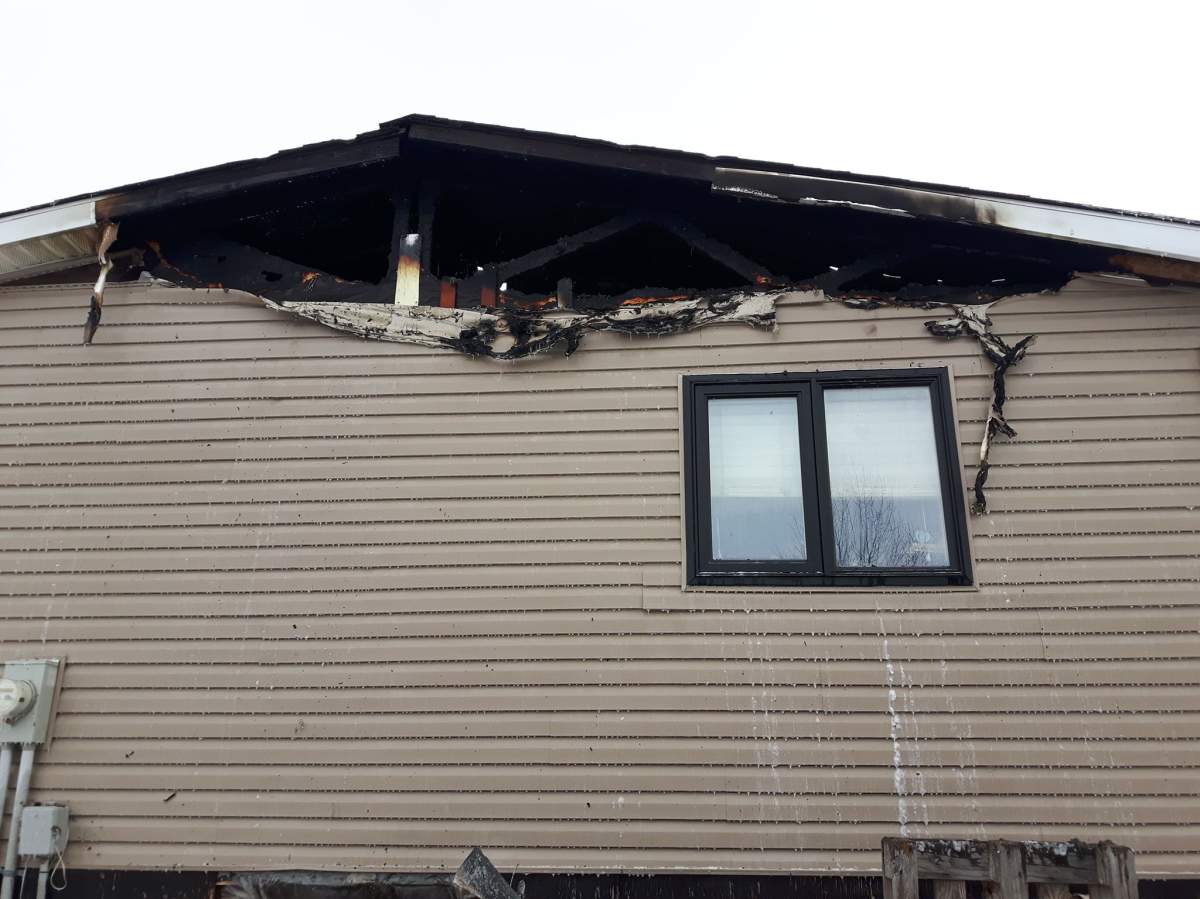 “There’s not much left of the house, the roof is caving in and lots of fire damage, smoke damage, water damage and we’re staying with neighbours now.”