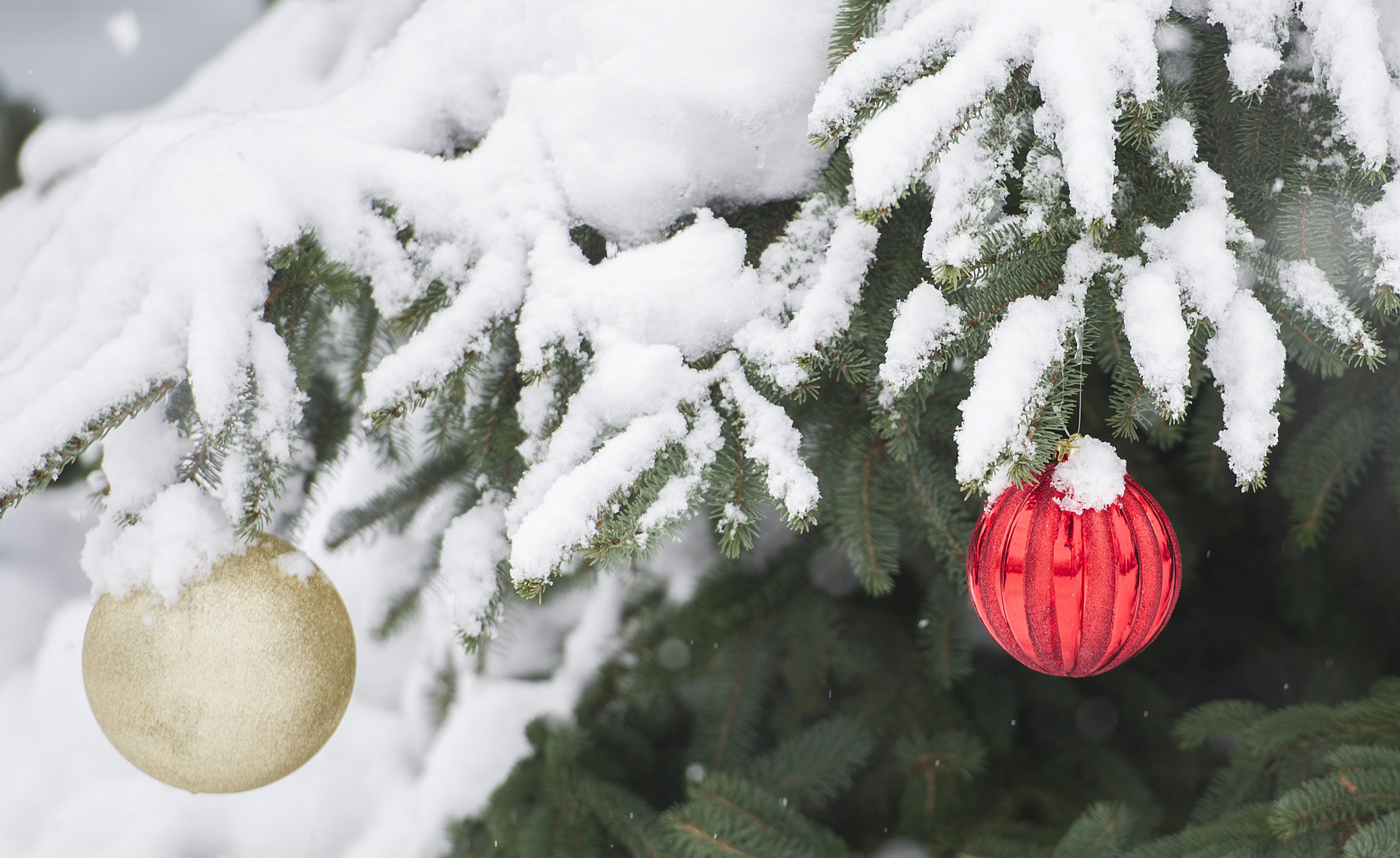 Ornaments hang on a snow covered tree in Montreal, December 24, 2016. THE CANADIAN PRESS IMAGES/Graham Hughes