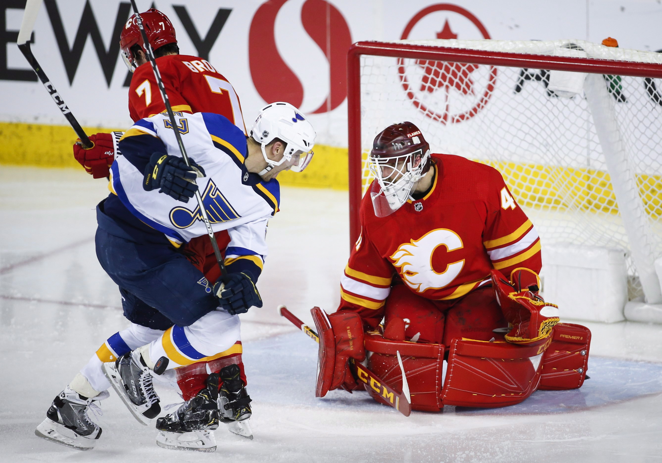 Allen was the story in the second period, stopping everything as Calgary outshot the visitors 13-5, but St. Louis held onto a 2-1 lead.