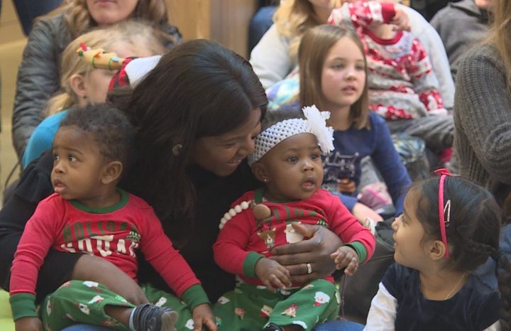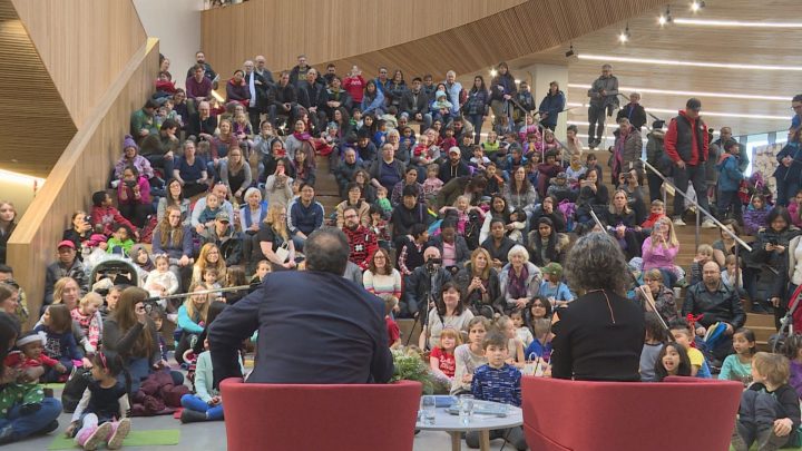 More than 300 people packed the maple staircase at Central Libary on Sunday afternoon as Calgary Mayor Naheed Nenshi read holiday tales to kids on Christmas Eve Eve.