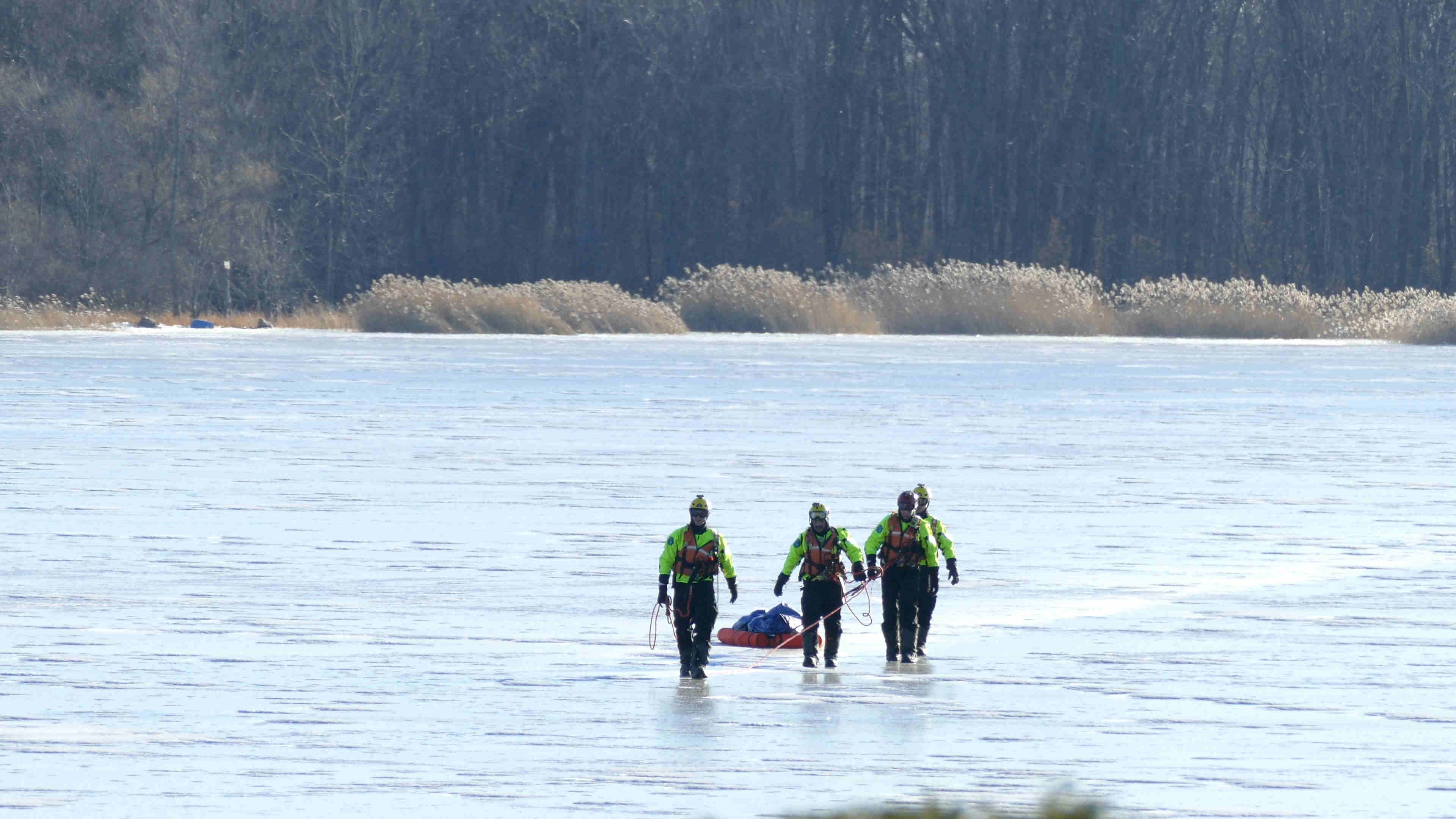 The man was found by the city’s fire department around 1:15 p.m. on the ice in Baie-D’Urfé near Lakeshore Road and Brittany Street.