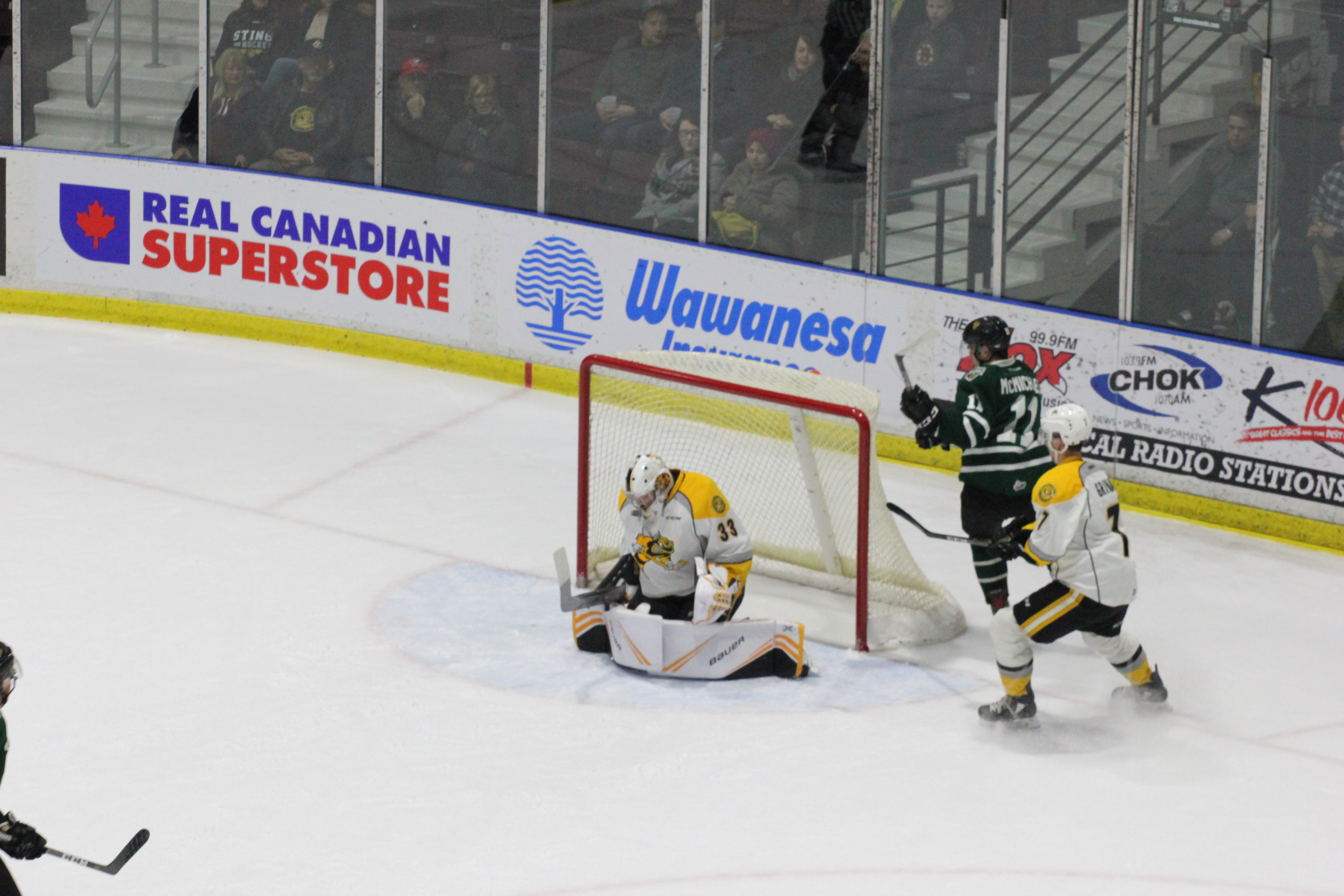 The Knights had erased a 3-0 Sting lead by scoring four straight goals, but a quick response from the Sting after the fourth London goal and a goaltender interference call that negated a London goal with just over a minute left in regulation sent things to 3-on-3 OT, where Sarnia came out on top.