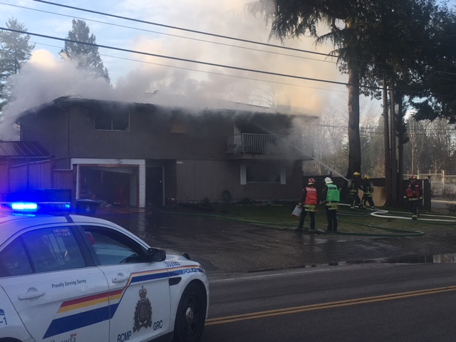 Surrey firefighters battled a large house fire on the morning of New Year’s Eve Day.