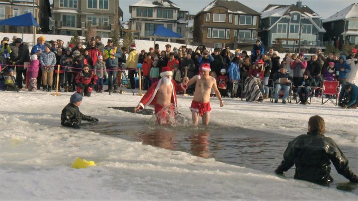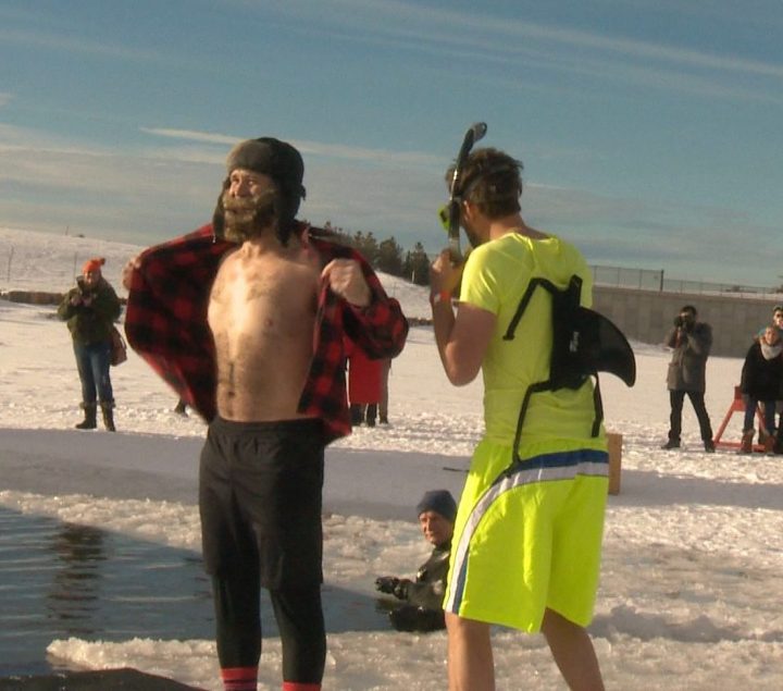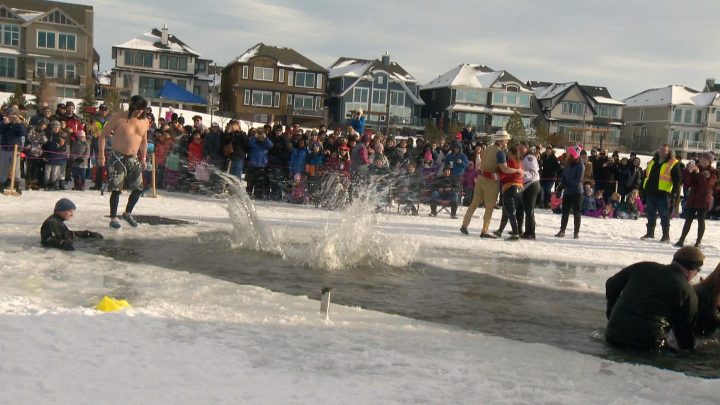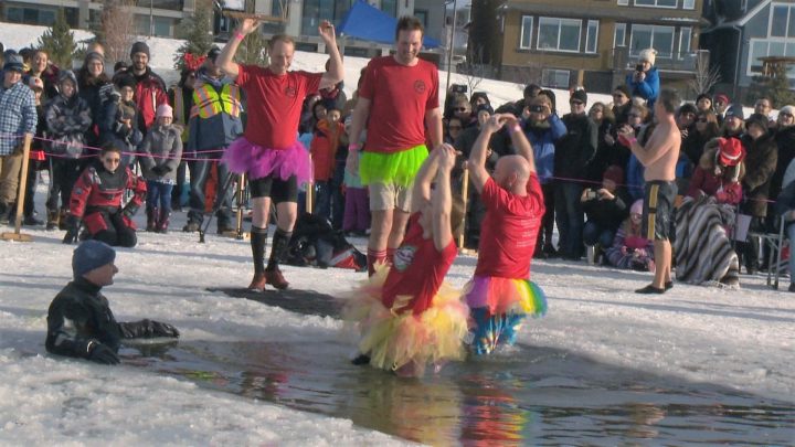 “The first year we did this in Discovery Ridge, there were seven of us that did it and it was -22 C, so this seems positively balmy,” Weaver said. “It’s about 4 C, sun’s out; it’s a lovely day.”